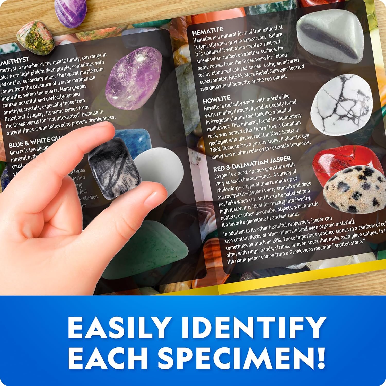 LEARN & IDENTIFY – The full-color identification sheet makes it easy to spot each gem and discover fun facts about their formation, properties, and uses in the real world.