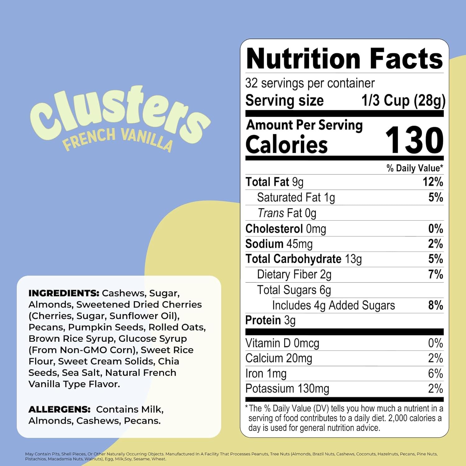 WHOLESOME INGREDIENTS – Gluten-free, non-GMO, kosher certified, and made without artificial flavors or colors—Clusters are crafted with quality you can trust.