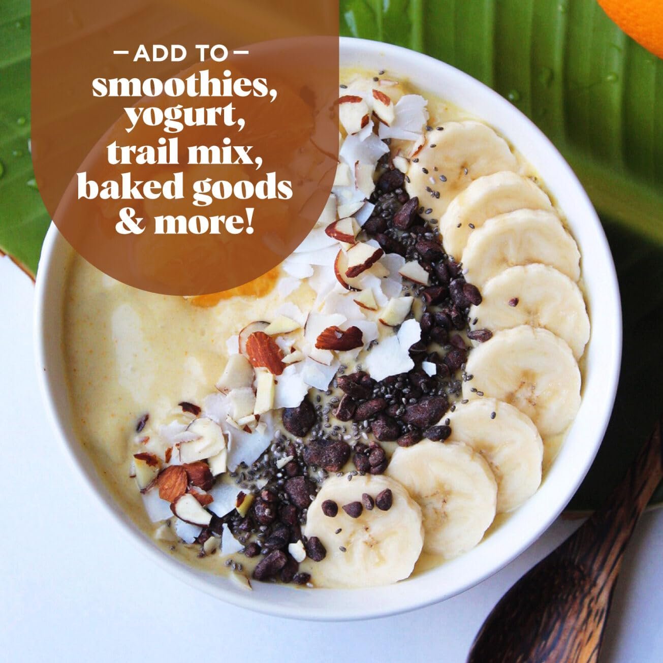 Enjoy by the handful or add to smoothies, cereal, trail mix, yogurt, ice cream and baked goods.
