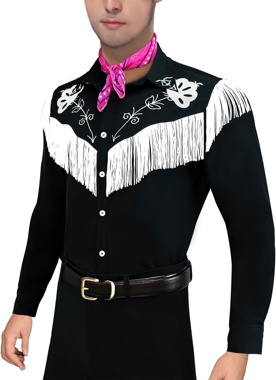 Customers find the cowboy costume to be of great quality, with one noting it doesn’t feel cheap. The embroidery receives positive feedback, with one customer mentioning the tassels are real. The material quality receives mixed reviews, with some customers loving it while another notes the handkerchief feels plasticky.