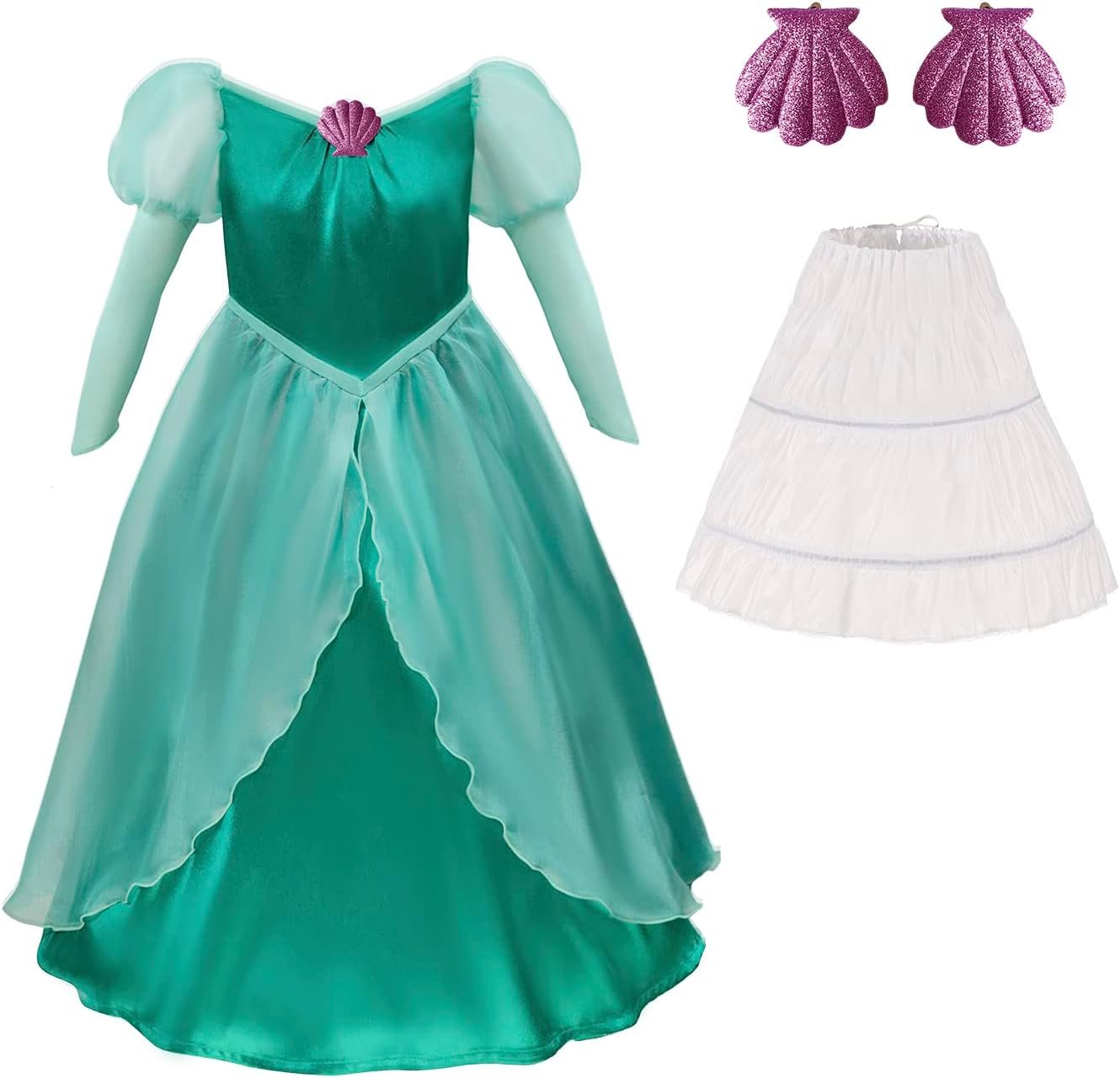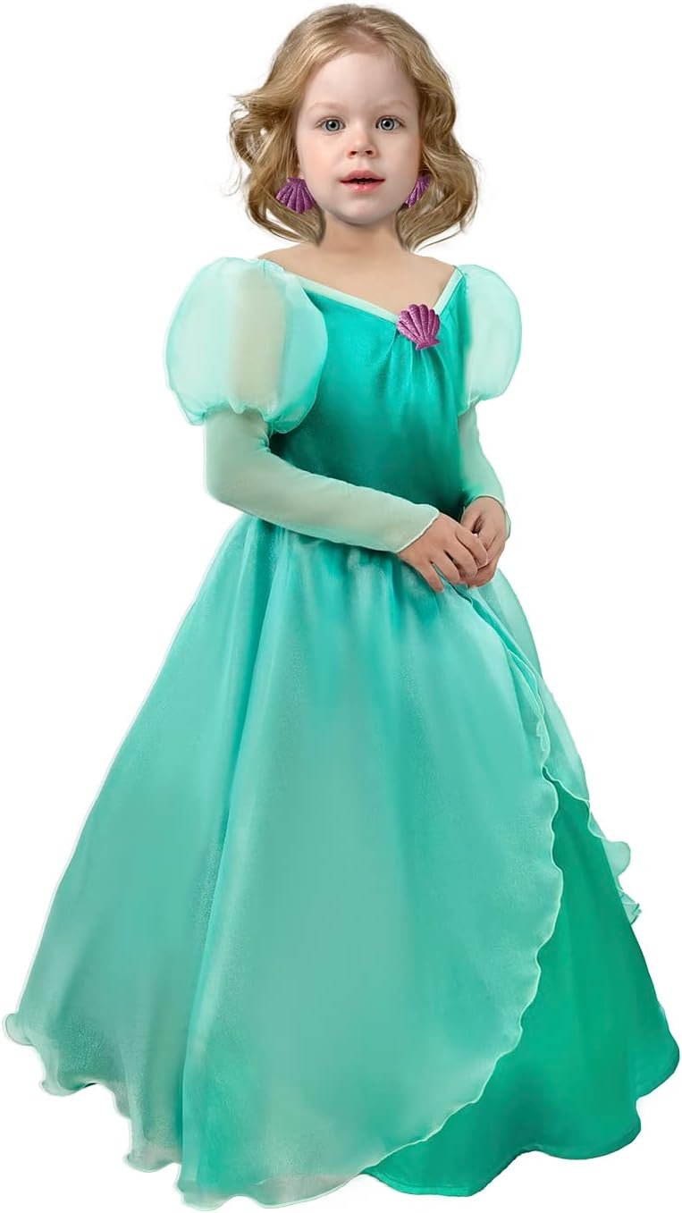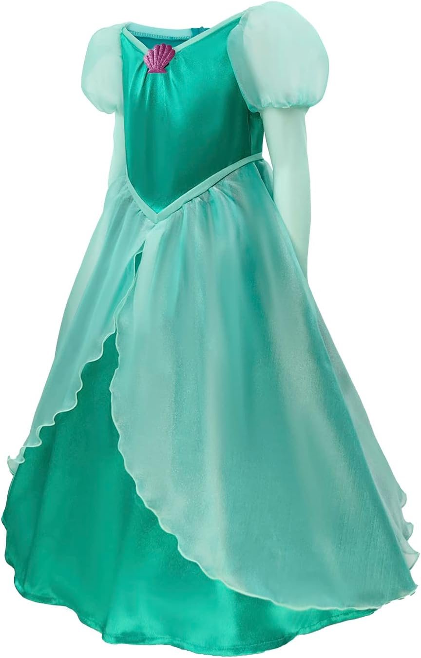 Customers find the mermaid princess dress well-made, cute, and comfortable, with nice material quality and a hoop skirt included. The sizing receives mixed feedback – while some say it fits true to size, others mention it runs a little big. The zipper quality and value for money also get mixed reviews, with some finding it well worth the price while others consider it expensive.