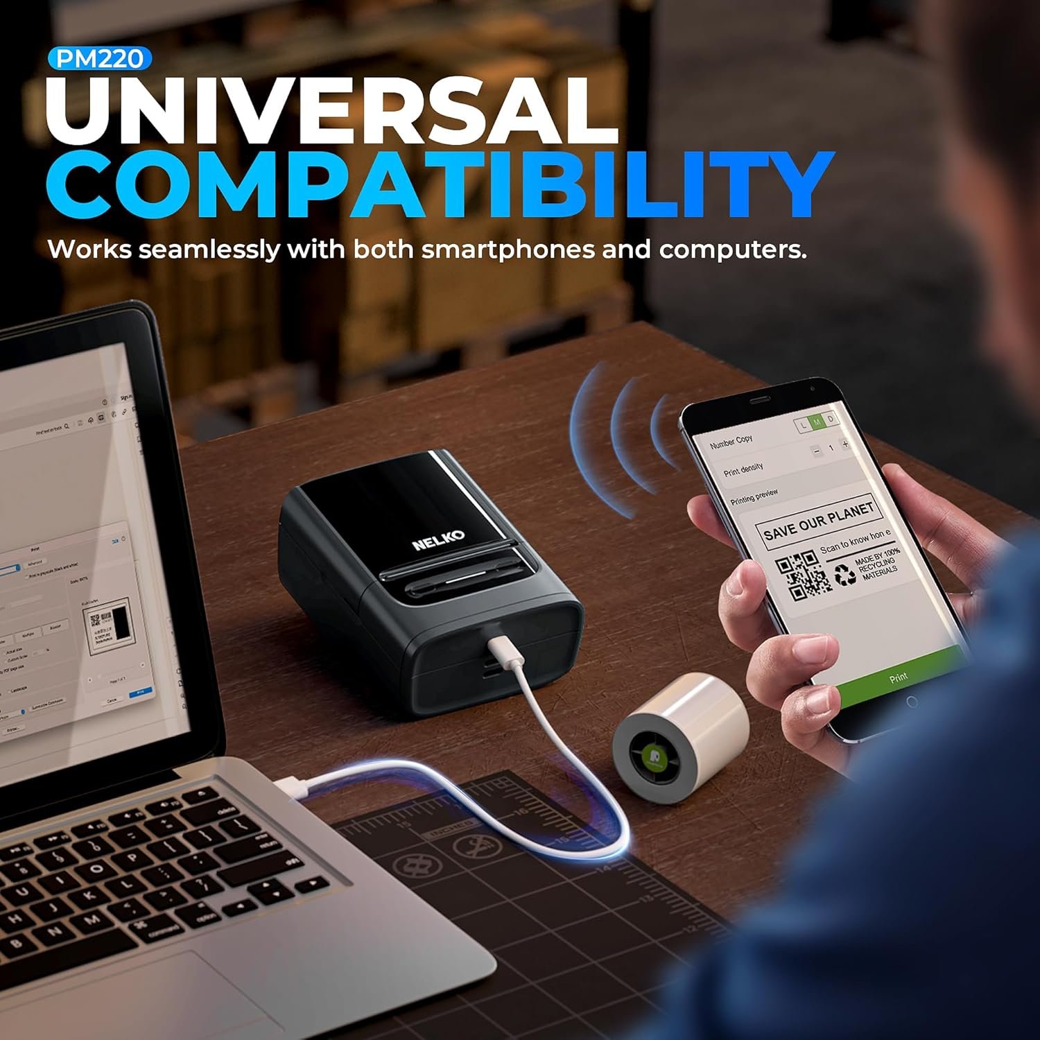 Easy to Use- PM220 Bluetooth Label Maker supports iOS & Android and PC. For iOS & Android mobile phone, please download the “Nelko” APP to Print via Bluetooth. For PC, you need to download the driver and APP for PM220 label printer, please visit ” nelkoprint.com” to obtain the PM220 computer driver and APP. Notice: Please DO NOT connect directly via Bluetooth for all devices