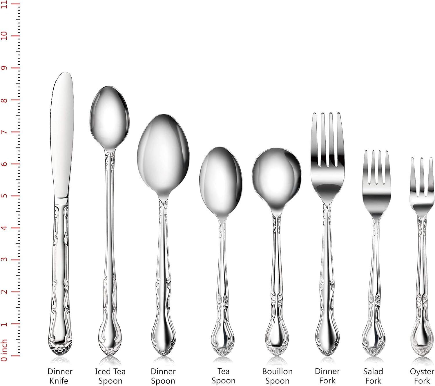 This flatware is designed from high-quality 18/0 stainless steel that makes it strong enough to survive daily use, ensuring its longevity. Also, it is corrosion and stain-resistant, so you can rest assured it will retain its pristine look for years to come. This flatware set is made of 18/0 stainless steel for optimum durability and strength. Furthermore, it is designed to remain corrosion- and stain-resistant for years of service, ensuring years of trouble-free use.