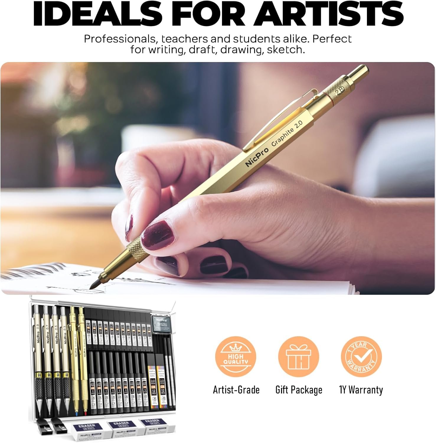 Good Weight & Smooth Writing: These lead pencils are full-brass metal body provides nice weight balance for fatigue-free writing and drawing.Retractable tip and sliding sleeve design, enhance shock-absorbing and protect the tip better.Ideals for artists, professionals, teachers and students alike. Convenient to carry your whole mechanical pencils set everywhere. Perfect for writing, drafting, drawing, sketching.