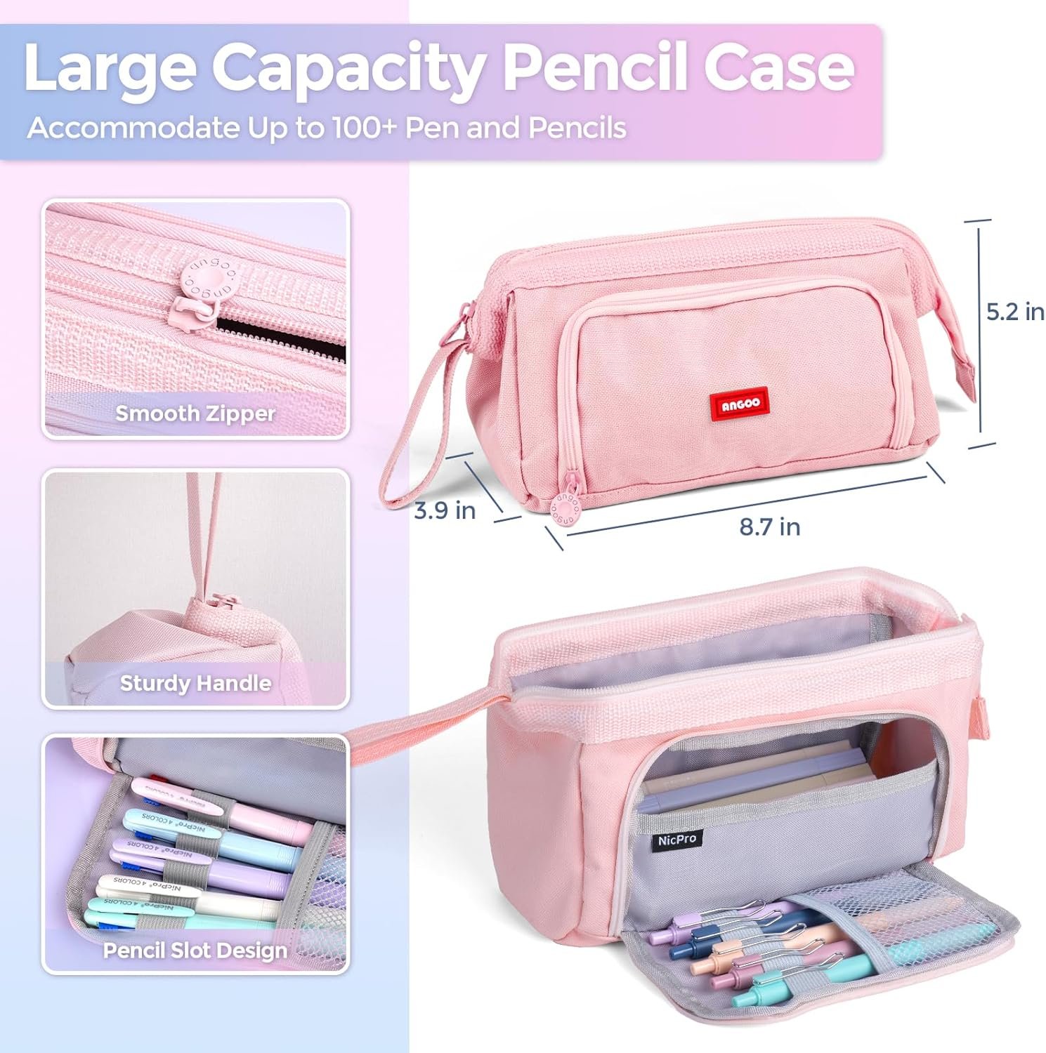 Large Capacity Pencil Case:Made of durable polyester fabric, this expandable pencil pouch offers ample storage, holding up to 100+ pens, pencils, and other small essentials. It features mesh pockets and pen loops for efficient organization, keeping everything within reach and neatly stored. Ideal for back-to-school supplies or as a personal organizer for home, office, or classroom use.