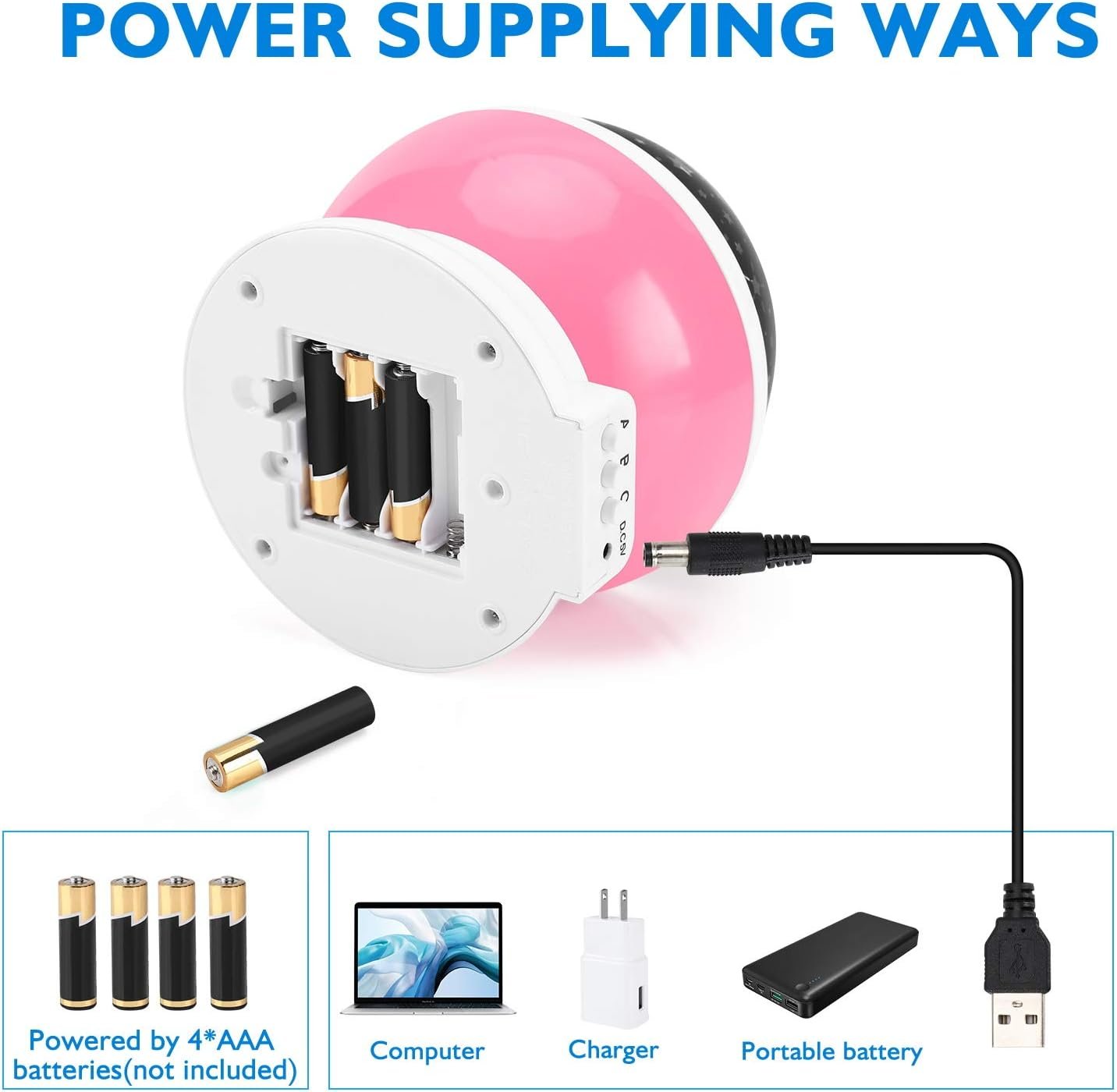 New Generation LED Beads: Bright and beautiful high output beads. The illumination area is wider than the old one. 2 Power Supply – Can be used with 4 AAA batteries or USB power cable