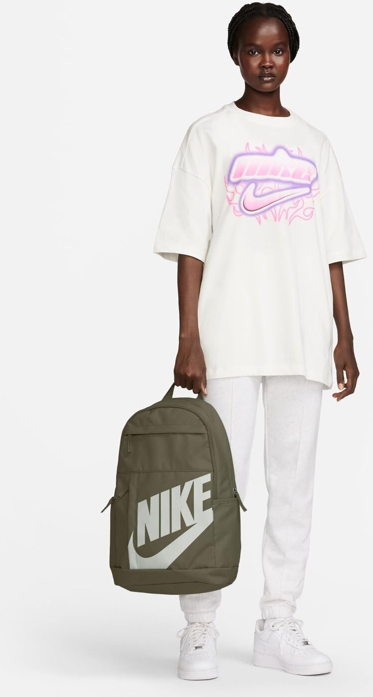 The Nike backpack accompanies you for training and work. The large zipped compartment is suitable for storing shoes or extra garments for the gym or books and a laptop for school. The two outer pockets allow you to store electronic devices and small essentials clearly and safely. This product is made from at least 65% recycled polyester fibers.