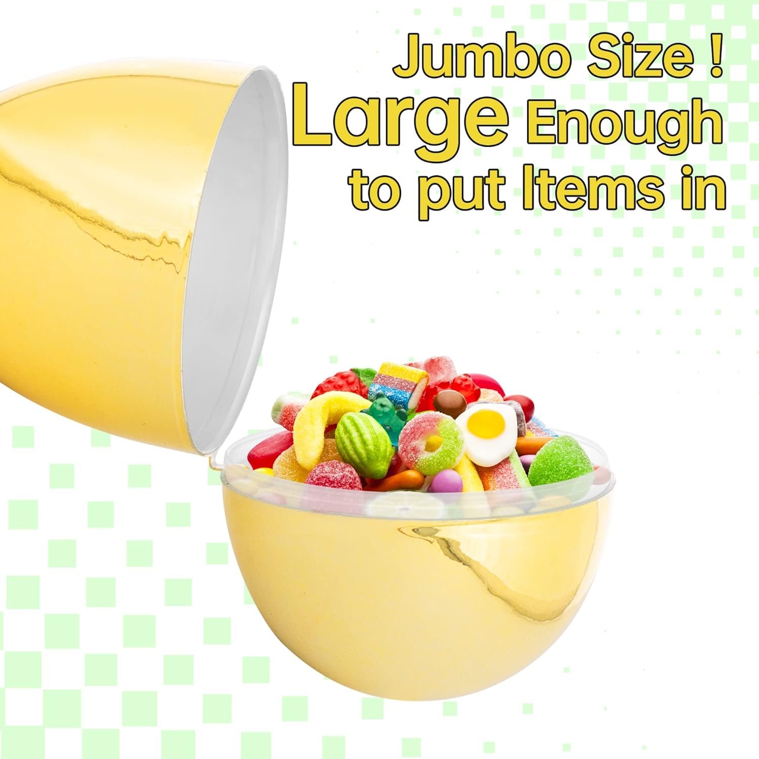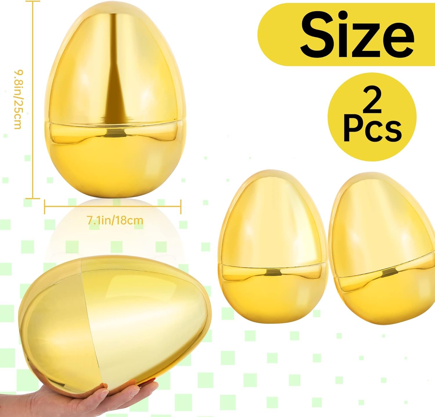 PACKAGE INCLUDE: 2pcs Jumbo Golden Easter eggs, fun for an Easter egg hunt. Kids will enjoy hunting for hidden treasures.