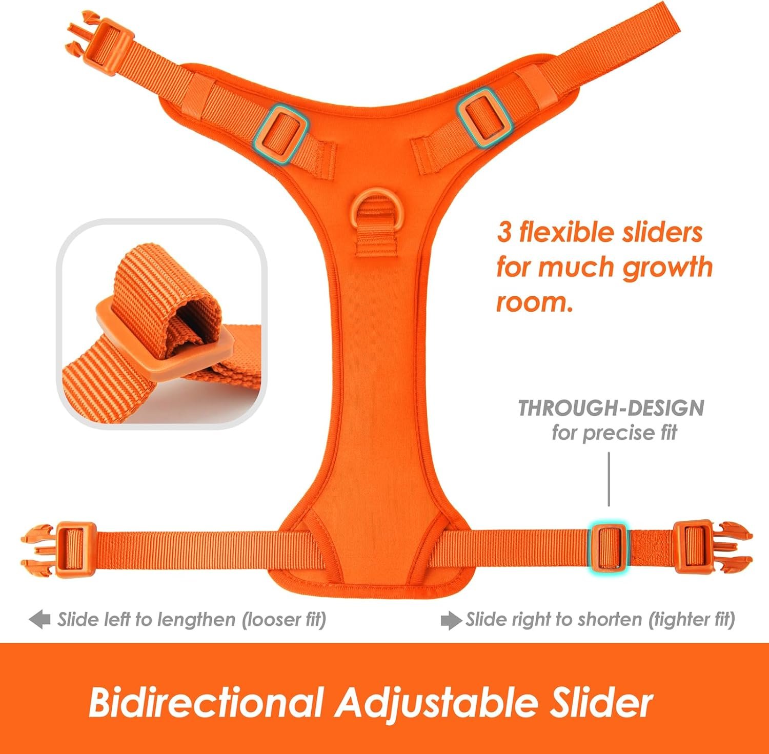 No Pull Design: This dog harness features a front D-ring for no-pull control and a back D-ring for daily walking. The front ring redirects pulling to gentle side pressure, discouraging lunging and making walks more comfortable and manageable. With both rings, you have the flexibility to choose based on your walk’s needs.