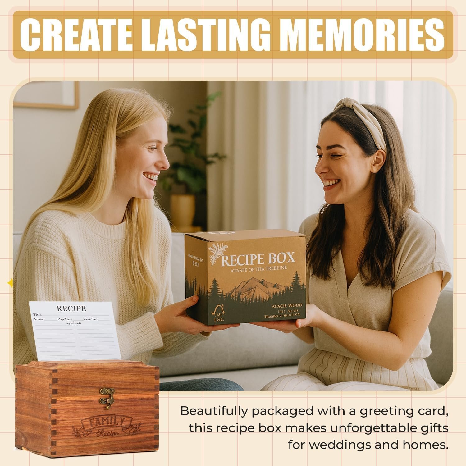 💕GIVE THE PERFECT GIFT THAT CREATES MEMORIES: You’ll make someone’s day with this thoughtful present! Your recipe box arrives beautifully packaged with a personal greeting card – perfect for weddings, new homes, or any cooking lover in your life. They’ll think of you every time they use it to create delicious meals.