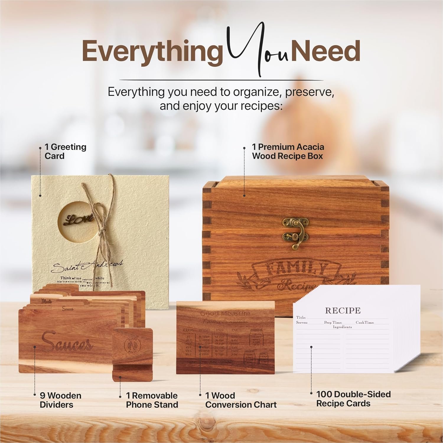 🌟USE YOUR RECIPE BOX FOR MORE THAN RECIPES: You’ll discover so many ways to use your beautiful wooden box! Store jewelry, photos, tea bags, or small keepsakes when you’re not using it for recipes. Plus, your conversion chart helps you get perfect measurements every single time you cook or bake.