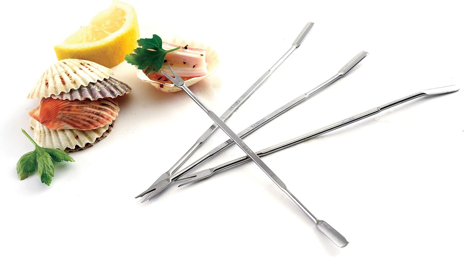 Each double-ended pick has a scoop on one end and fork on the other end. With a forked end to pierce and a spoon end to scoop, these picks efficiently remove every morsel of meat from a variety of shellfish.