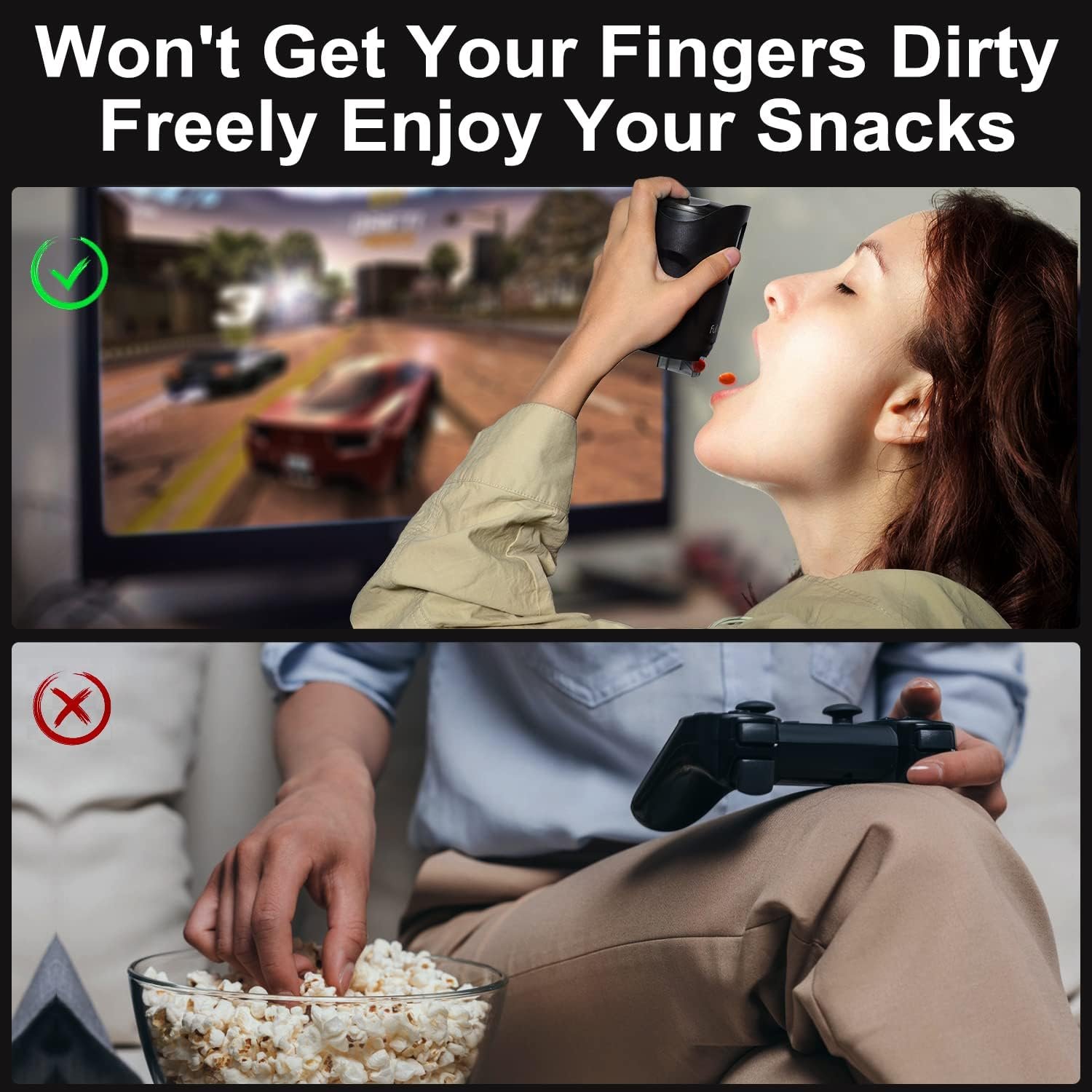 One-handed Operation, one press to access the snack.Keep your fingers clean while enjoying your favorite snacks.Snack Hygienically(Snacks remain untouched)Can be easily cleaned under running water.Can store leftover or unpackaged snacks.