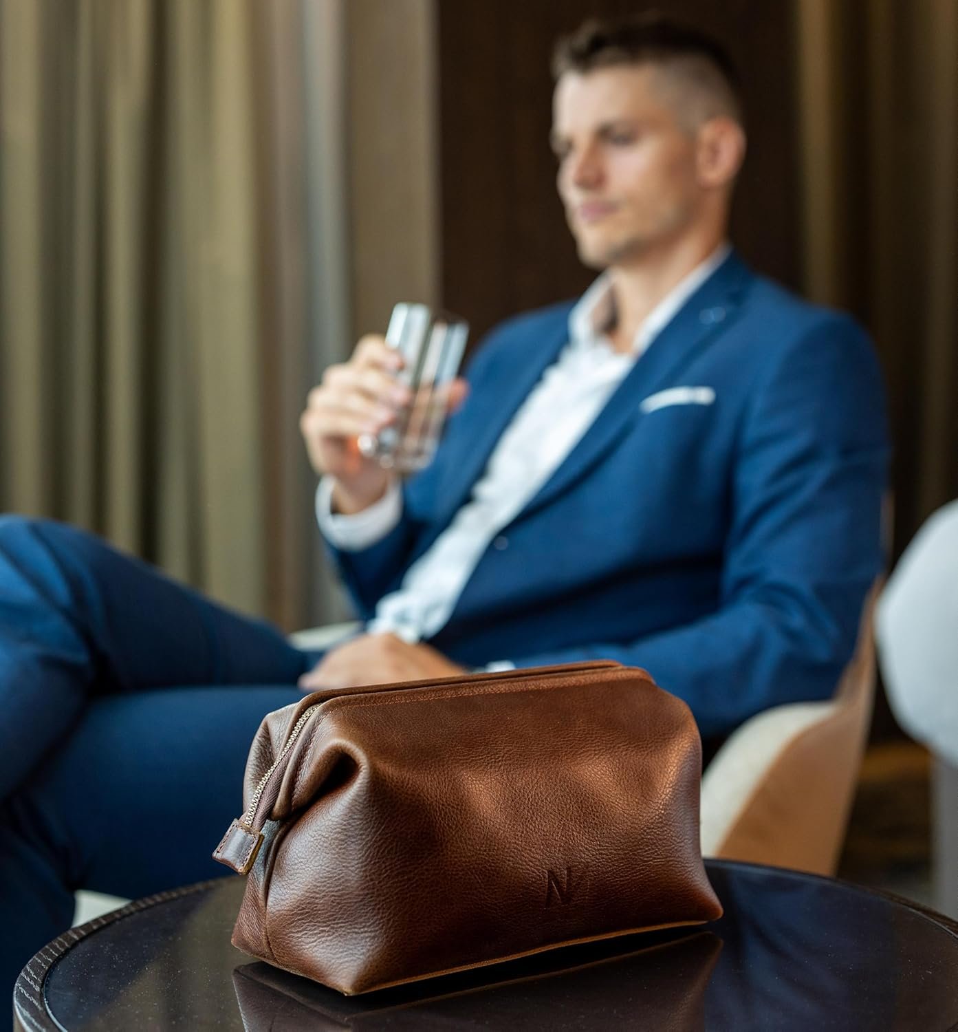 PERFECT GIFT: Crafted from genuine leather, our NV Holders Premium Leather Toiletry Bag for Men makes the perfect gift. Its luxurious feel and elegant design appeal to anyone who appreciates quality craftsmanship and practicality, making it an ideal choice for birthdays, holidays, or any special occasion.