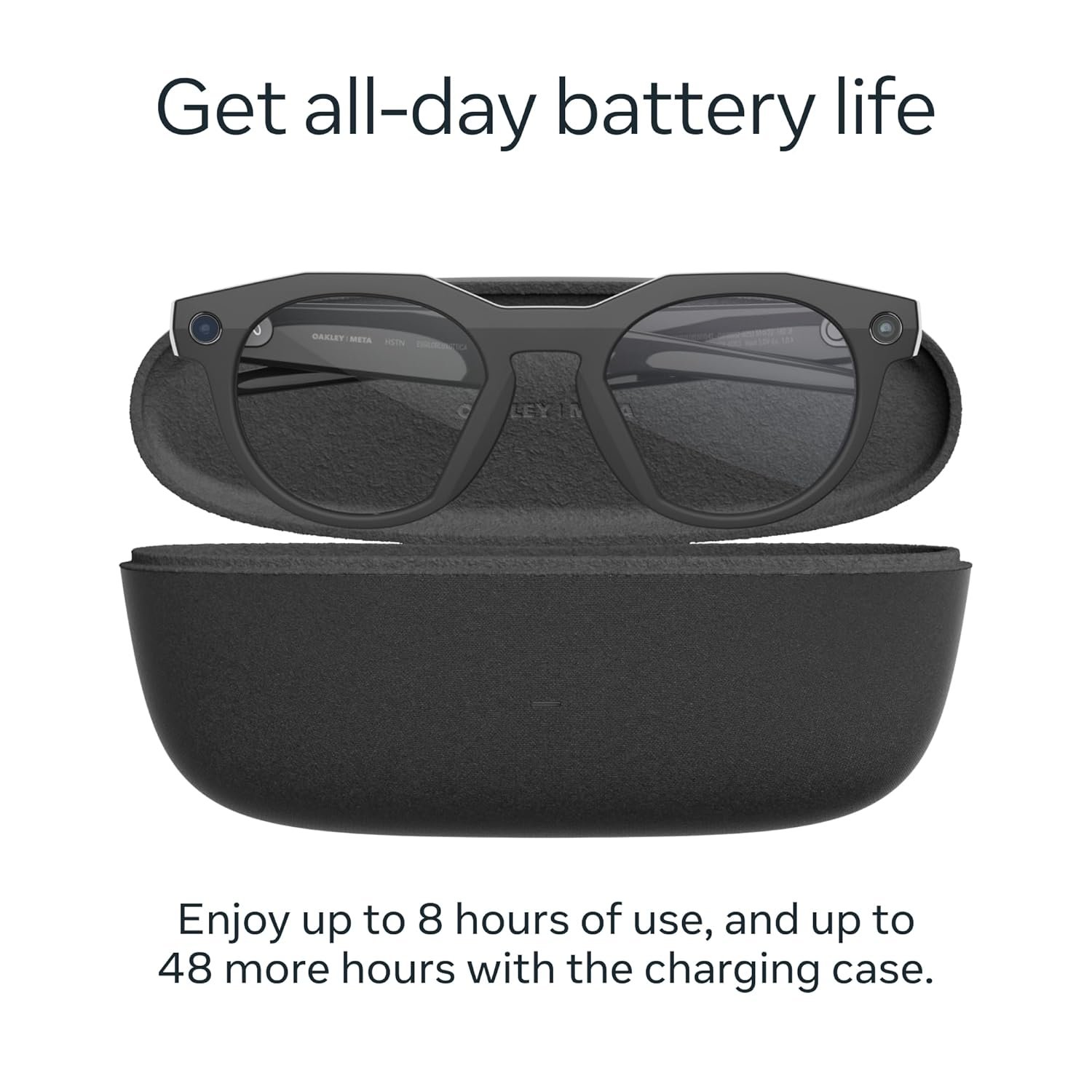 UP TO 8 HOURS OF BATTERY LIFE — A fully charged pair of Oakley Meta HSTN glasses can last up to 8 hours of typical use. Plus, the charging case provides an additional 48 hours of charging on the go.