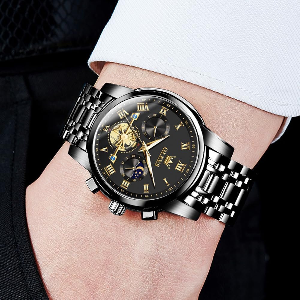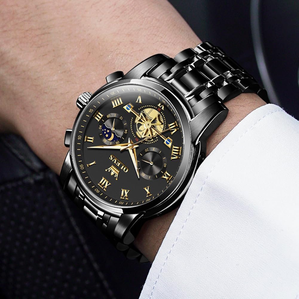 olevs mens watches chronograph business dress quartz stainless steel waterproof luminous date wrist watch