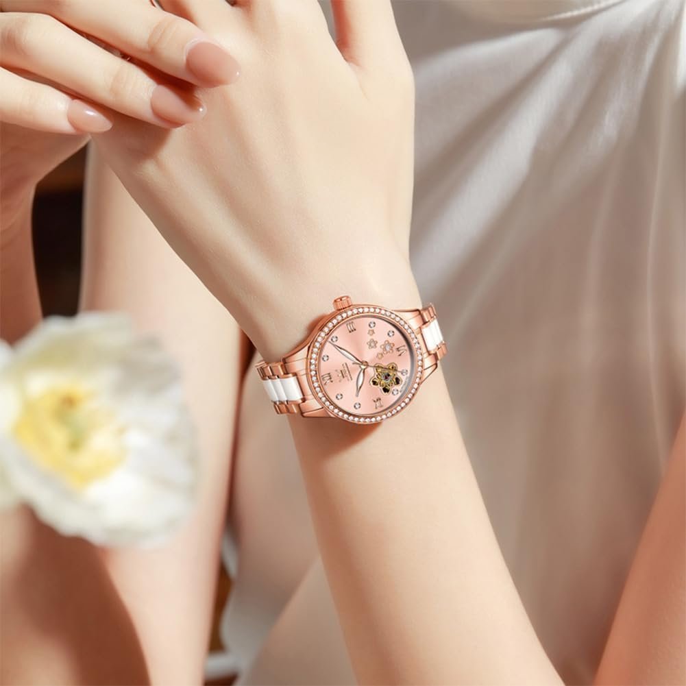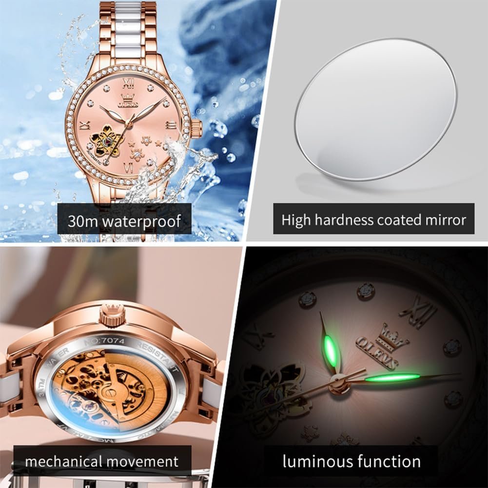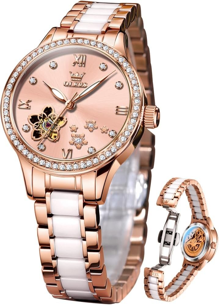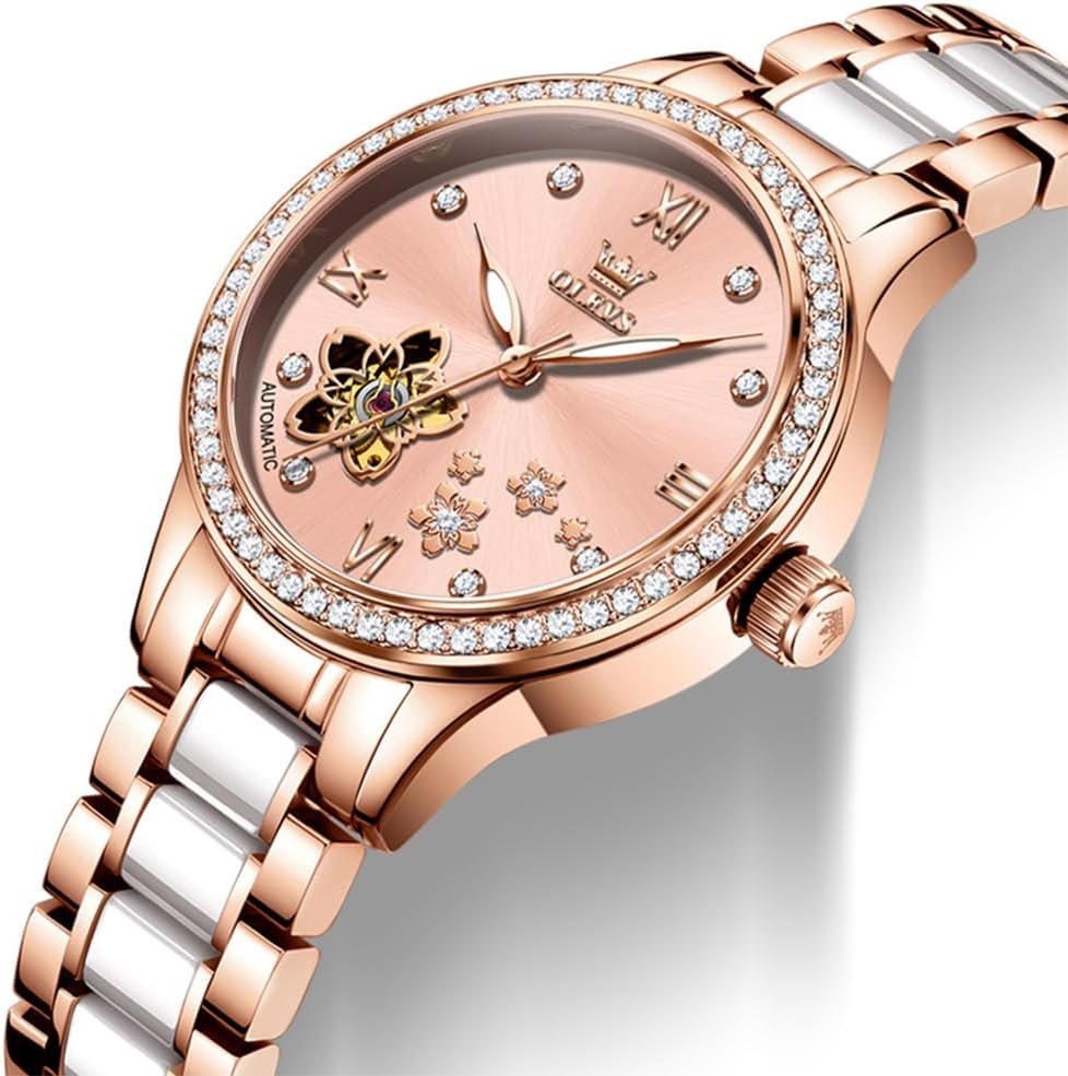 OLEVS Womens Watches Automatic Luxury Dress Ladies watch Ceramic strap Rose Gold Self Winding Female Wrist Watch