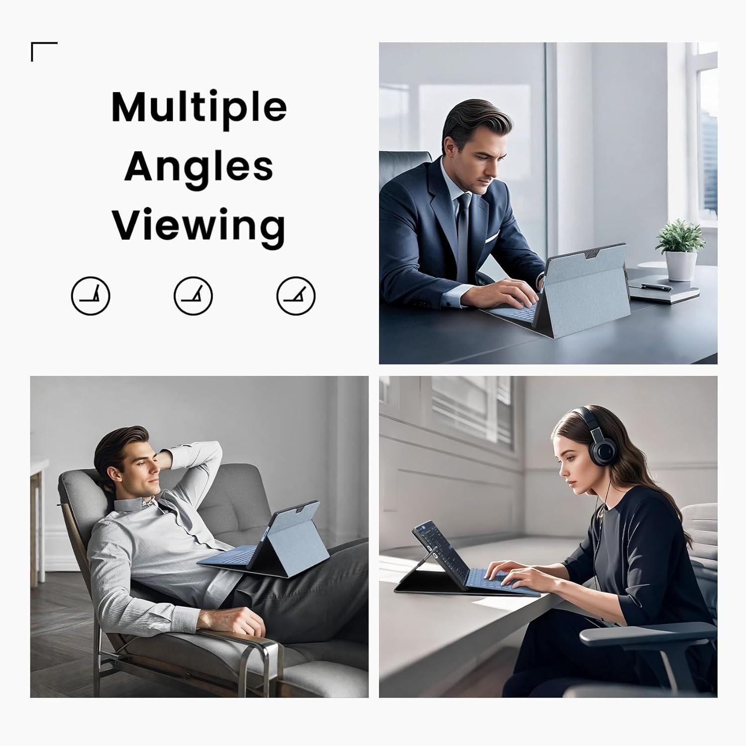 【Multiple Angles Built-in Kickstand】Allows surface stand to be adjusted to different angles for better viewing or typing without removing the case.It can meet your needs, whether you use it as a tablet or a laptop