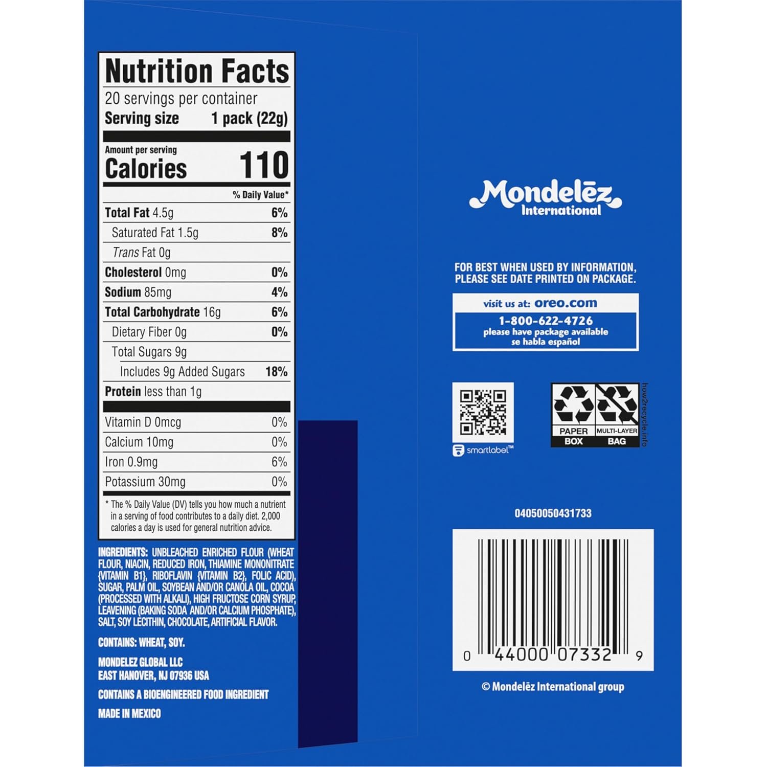Take a delicious break with OREO Chocolate Sandwich Cookies, America’s favorite sandwich cookie for over 100 years. Supremely dunkable, OREO chocolate cookies sandwich a rich creme filling between the bold taste of two chocolate wafers–making them milk’s favorite cookie. These original OREO chocolate snacks are great packing with lunch at school or work, mixing into your favorite dessert recipe, adding as an ice cream topper, handing out as Halloween treats, using as stocking stuffers or Easter basket fillers. Each pack is a good size for grabbing on the way out the door for delicious on the go snacks. These convenient OREO cookie snack packs hold two cookies each, making them a great serving size for snacking, sharing or traveling. With 20 snack packs in the box, you’ll always be ready to snack on your way out the door.