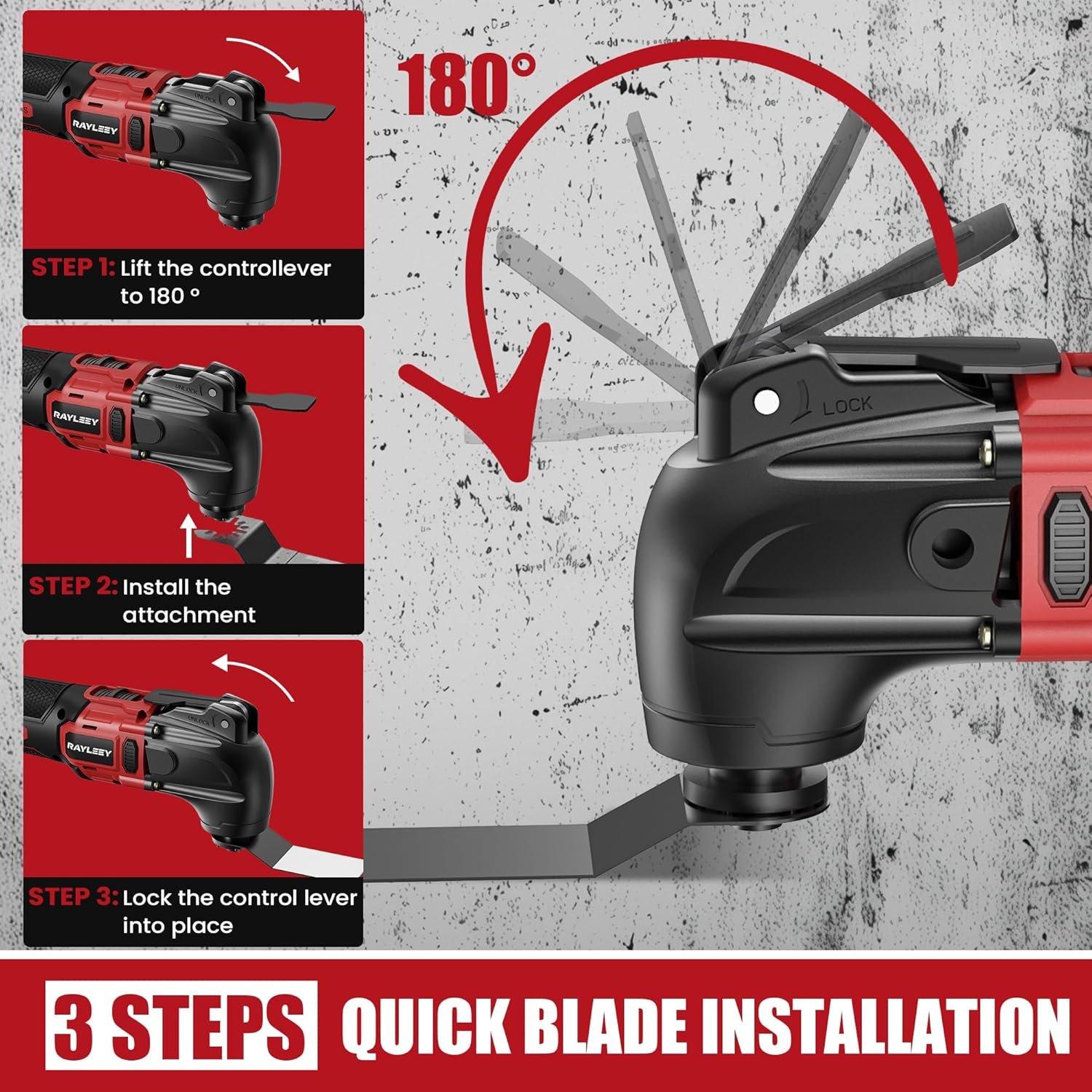 🔧 Quick-Change System & Ergonomic Grip Switch accessories in seconds — not minutes. Our tool-free quick-change system makes blade swaps up to 80% faster than traditional tools. Plus, the soft-grip handle reduces hand fatigue by up to 40%, so you can work longer with less strain.