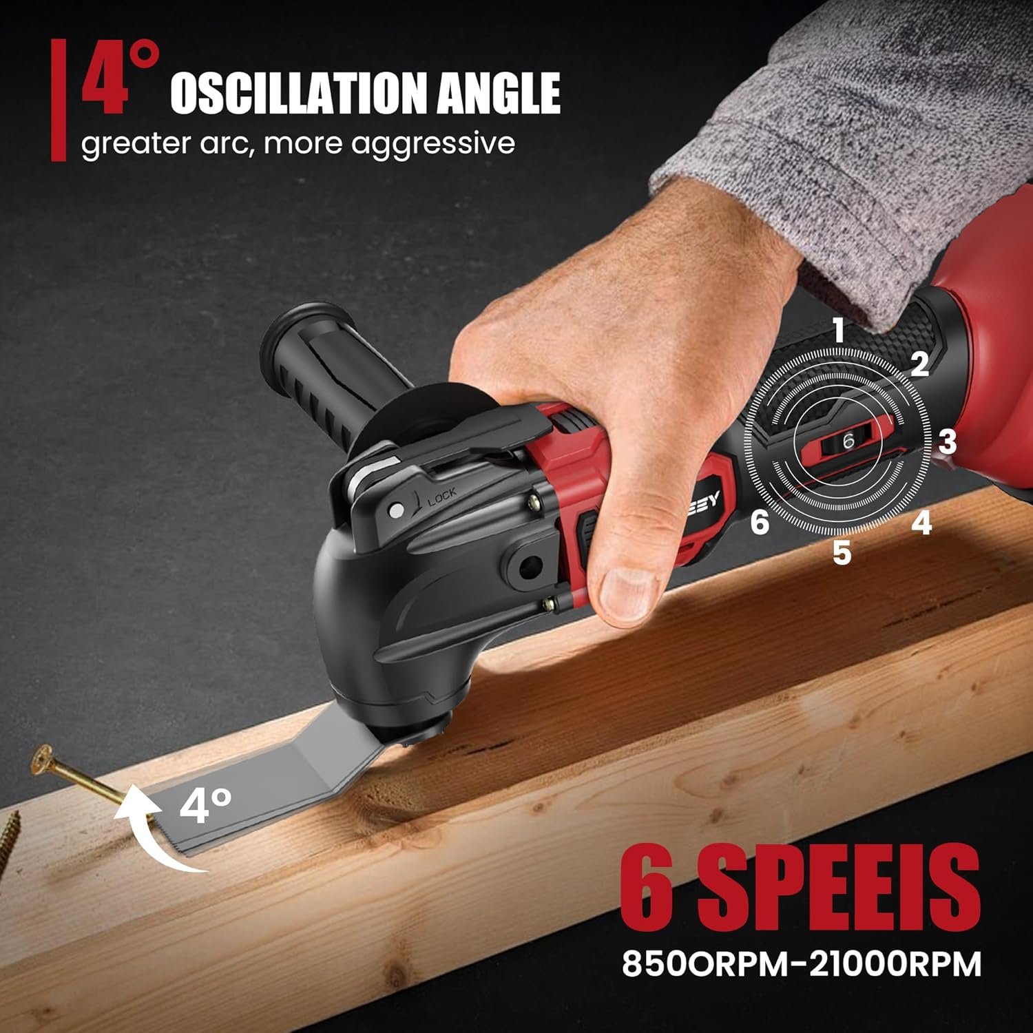 🎛️ 6 Speeds & 3° Oscillating Angle Take control with 6 variable speeds — up to 21,000 OPM — ideal for everything from detailed crafts to tough cuts. The optimized 3° oscillation angle improves efficiency and offers better access into tight spaces for clean, precise work.