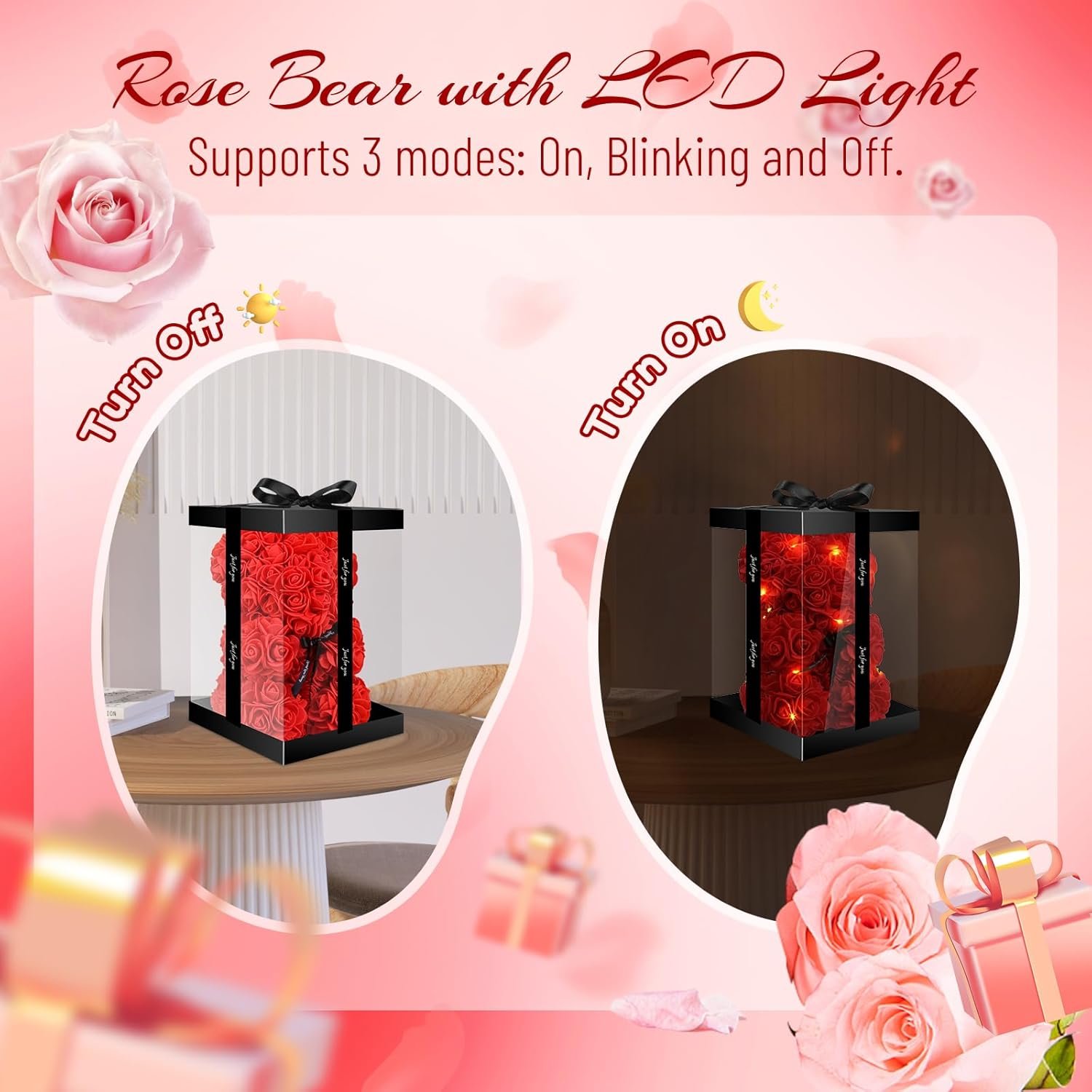 🎁 The Perfect Gift for Every Special Moment: Ready to delight! This stunning 9-inch LED bear flower red forever arrives in an elegant gift box, complete with a customizable greeting card. Ideal for Mother’s Day, Valentine’s, birthdays, anniversaries, or just because—make any occasion unforgettable.