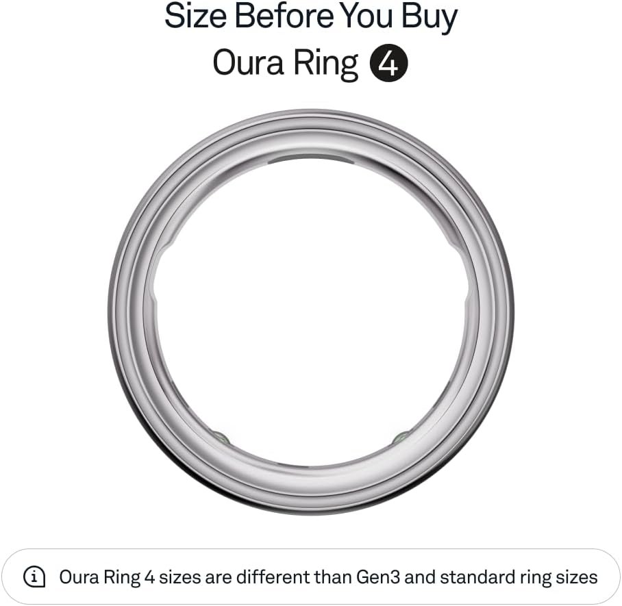 SIZE BEFORE YOU BUY – Oura Ring 4 sizes are different from standard ring sizes. Size yourself with the Oura Ring 4 Sizing Kit. For additional details, see “From the manufacturer” section below