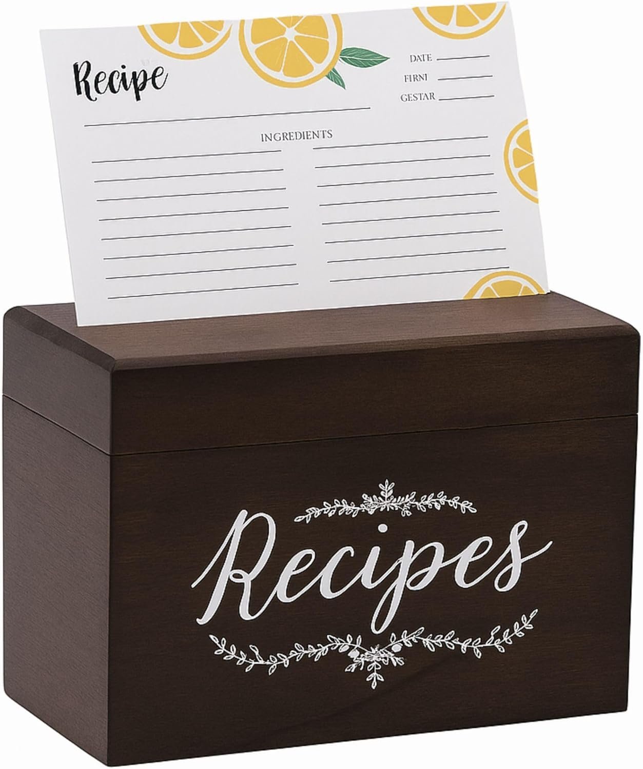 Rustic Box and Functionality: 1 rustic brown wood recipe box with magnet closure, complete with recipe cards and dividers for easy organization and a touch of farmhouse style.
