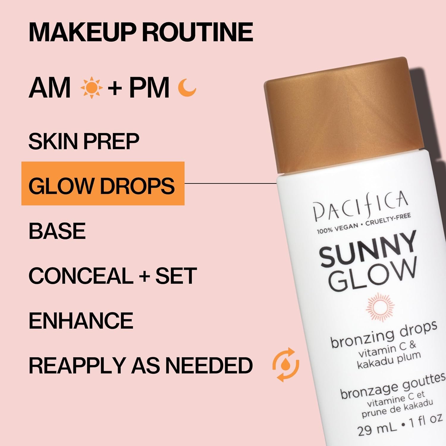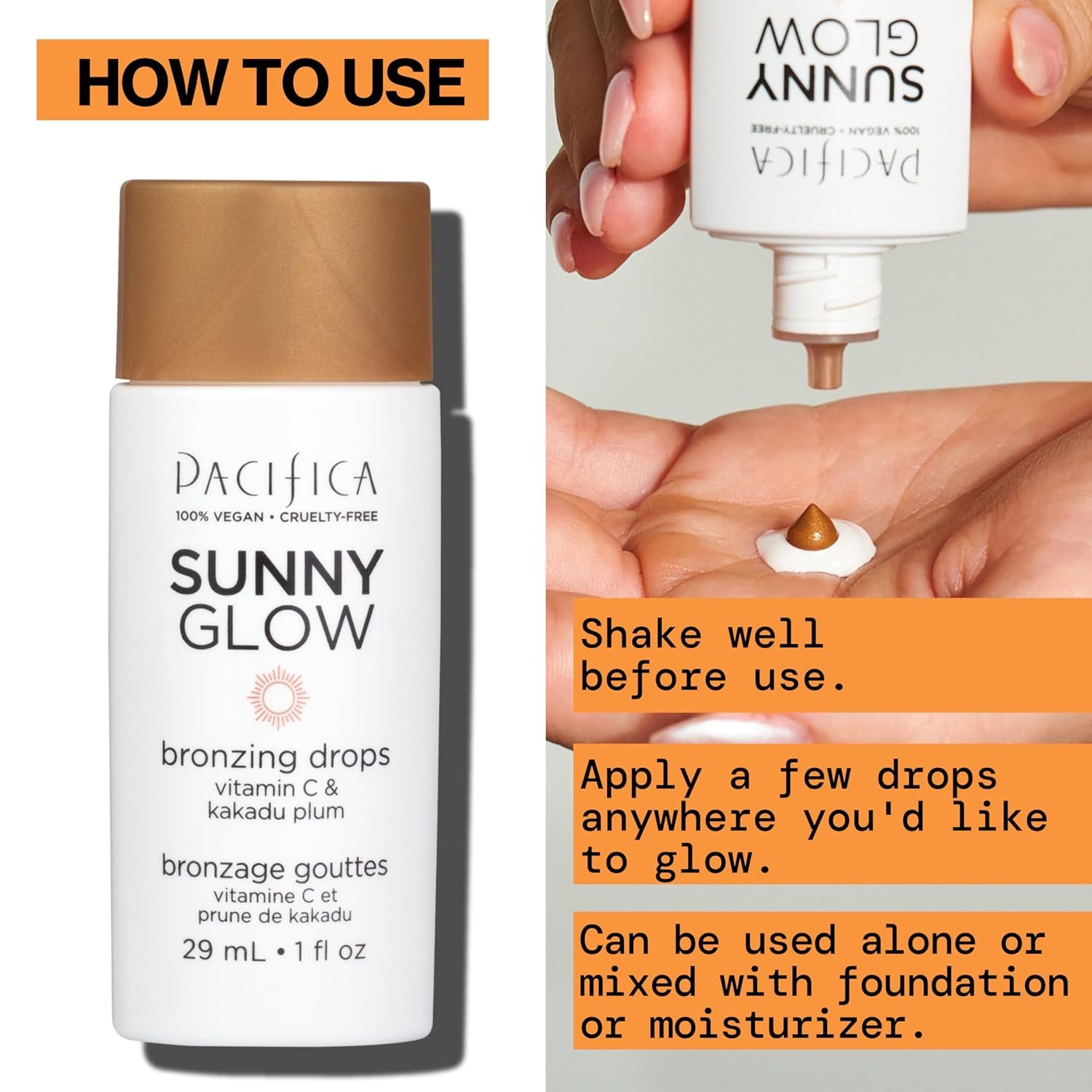 As always with Pacifica, you can glow knowing you’re using a product that aligns with your values. Sunny Glow Bronzing Drops are 100% vegan and cruelty-free – no animal-derived ingredients and never tested on animals. The formula is free of harsh chemicals like parabens, phthalates, or mineral oils, so you’re treating your skin to clean goodness. It’s also fragrance-free, relying on natural ingredients so it’s gentle on sensitive skin. Whether you mix a drop into your daily routine or apply it for a special event, you’ll love how easy and healthy getting a bronzed glow can be. Radiant, nourished skin with a tropical vacation vibe – all in a little glass dropper bottle!