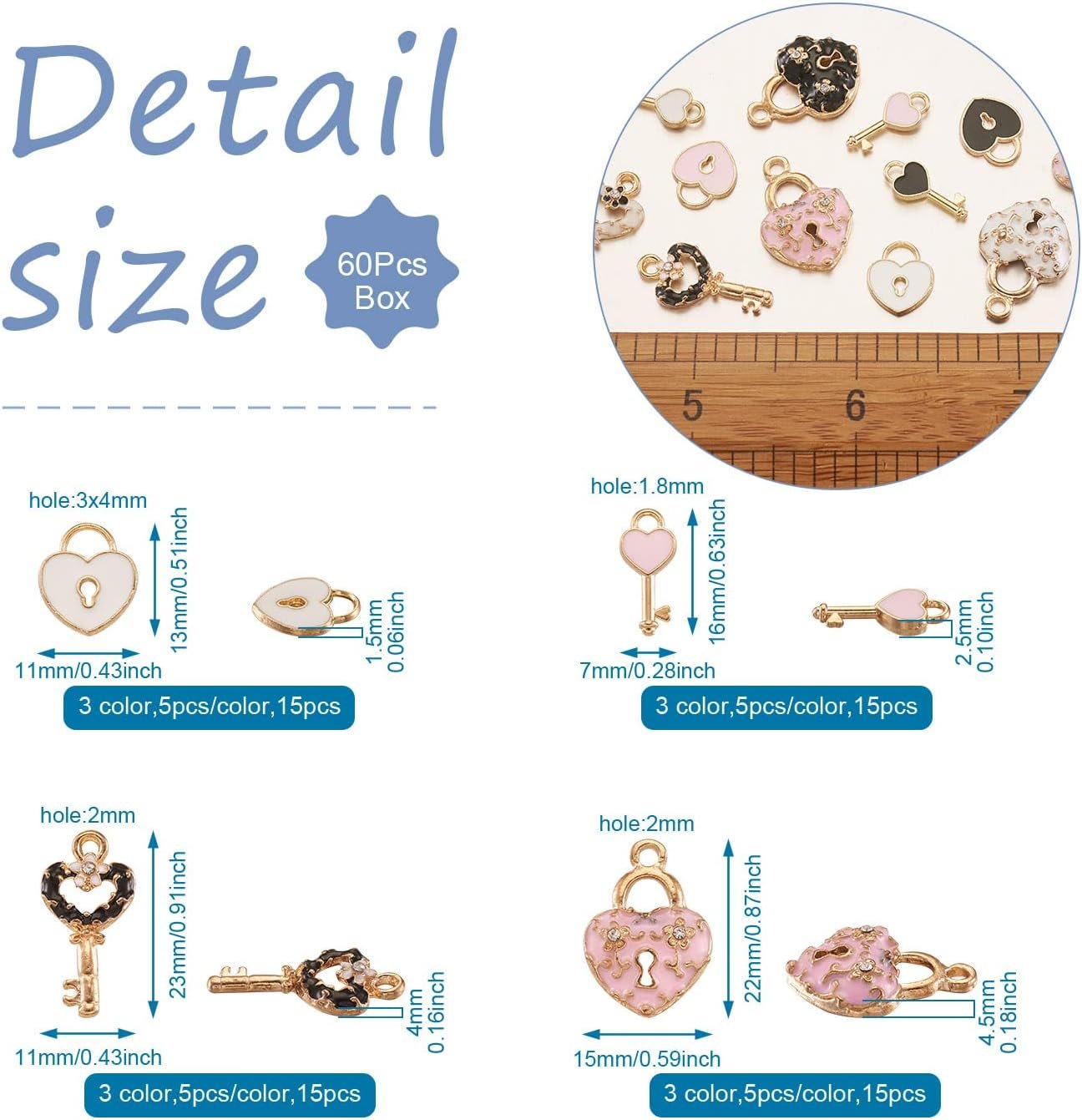 Be the first to review “Pandahall 60pcs Heart Lock and Key Charms Mini Alloy Enamel Padlock & Heart Key Pendants with Rhinestone Light Gold Plated for Valentine’s Day Locked Bracelet Necklace Jewelry Making” Cancel reply