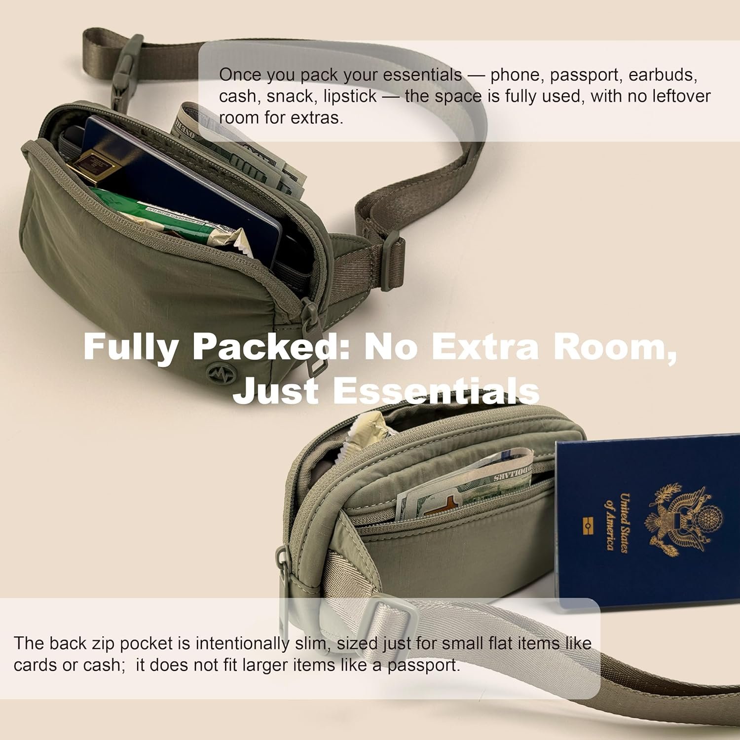 Compact Yet Functional (18 x 4 x 10.5 cm / 7.1″ x 1.6″ x 4.1″): Holds just the necessities: fits iPhone Pro Max (6.7”), lipstick, earbuds, passport, and cards or cash. Not suitable for bulky items