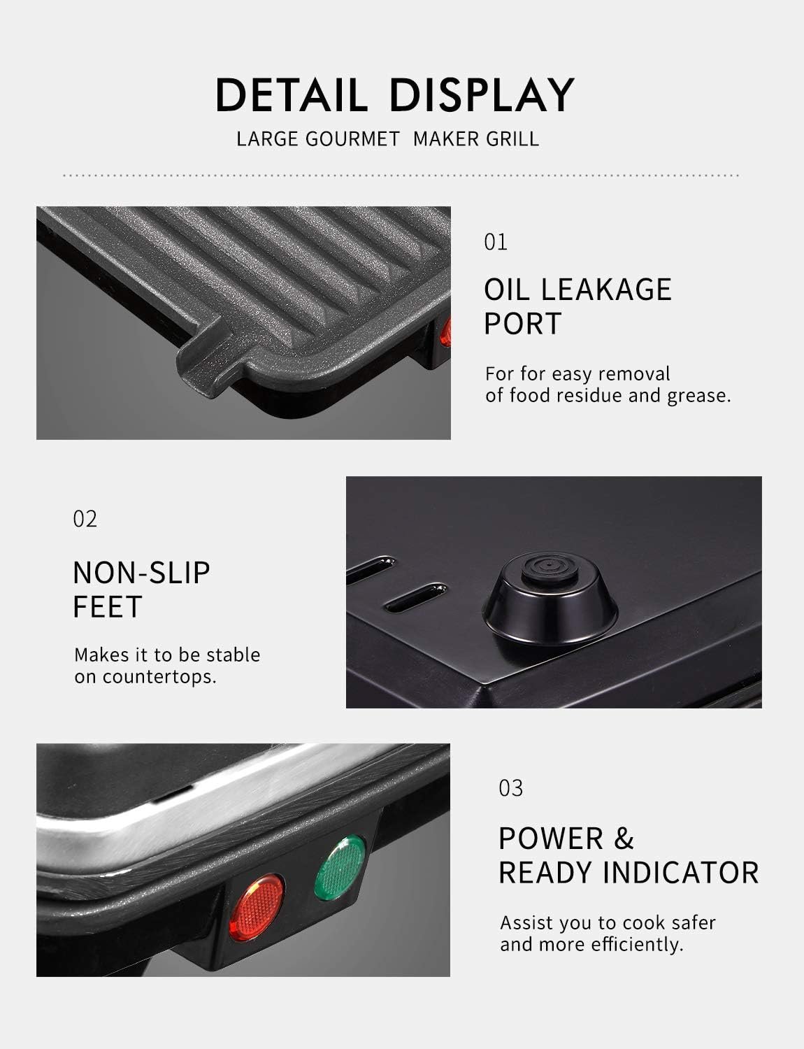 Powerful 1200W heating elements provide even heat and faster temperature recovery across the entire surface, let you enjoy your delicious food in less time.