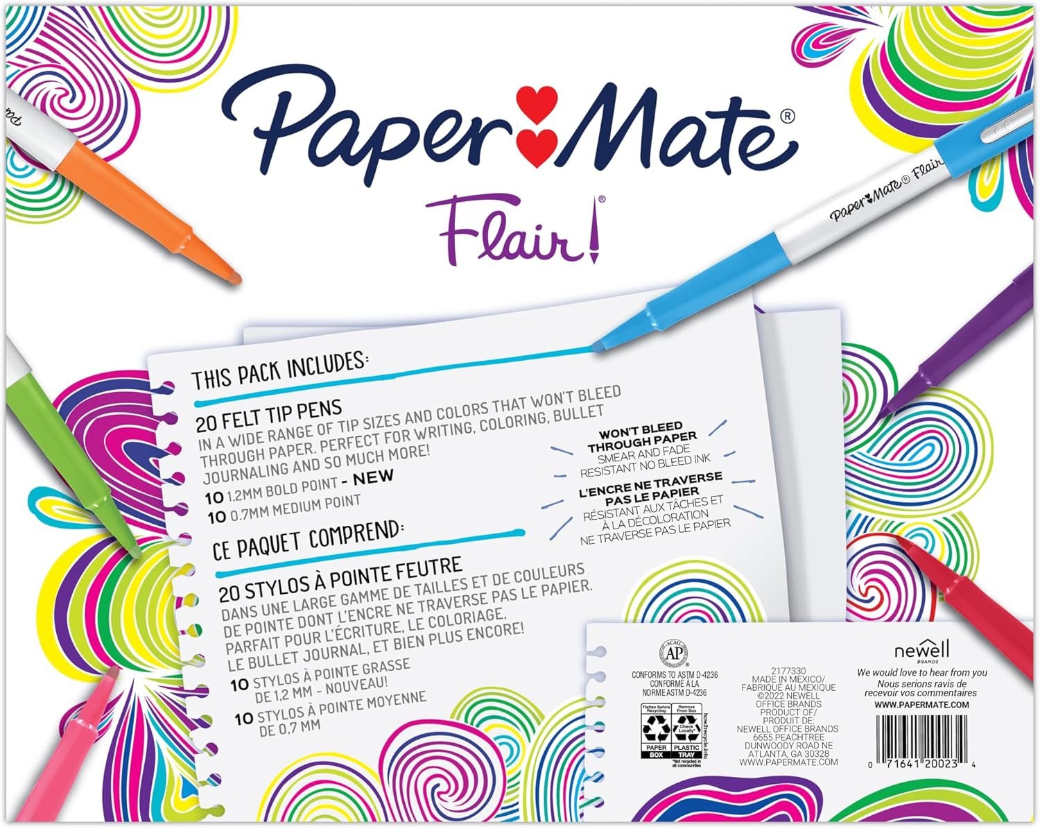 Be the first to review “Paper Mate Flair Felt Tip Pens, Bold and Medium Point, 0.7 mm, Assorted Colors, Pack of 20 Pens”