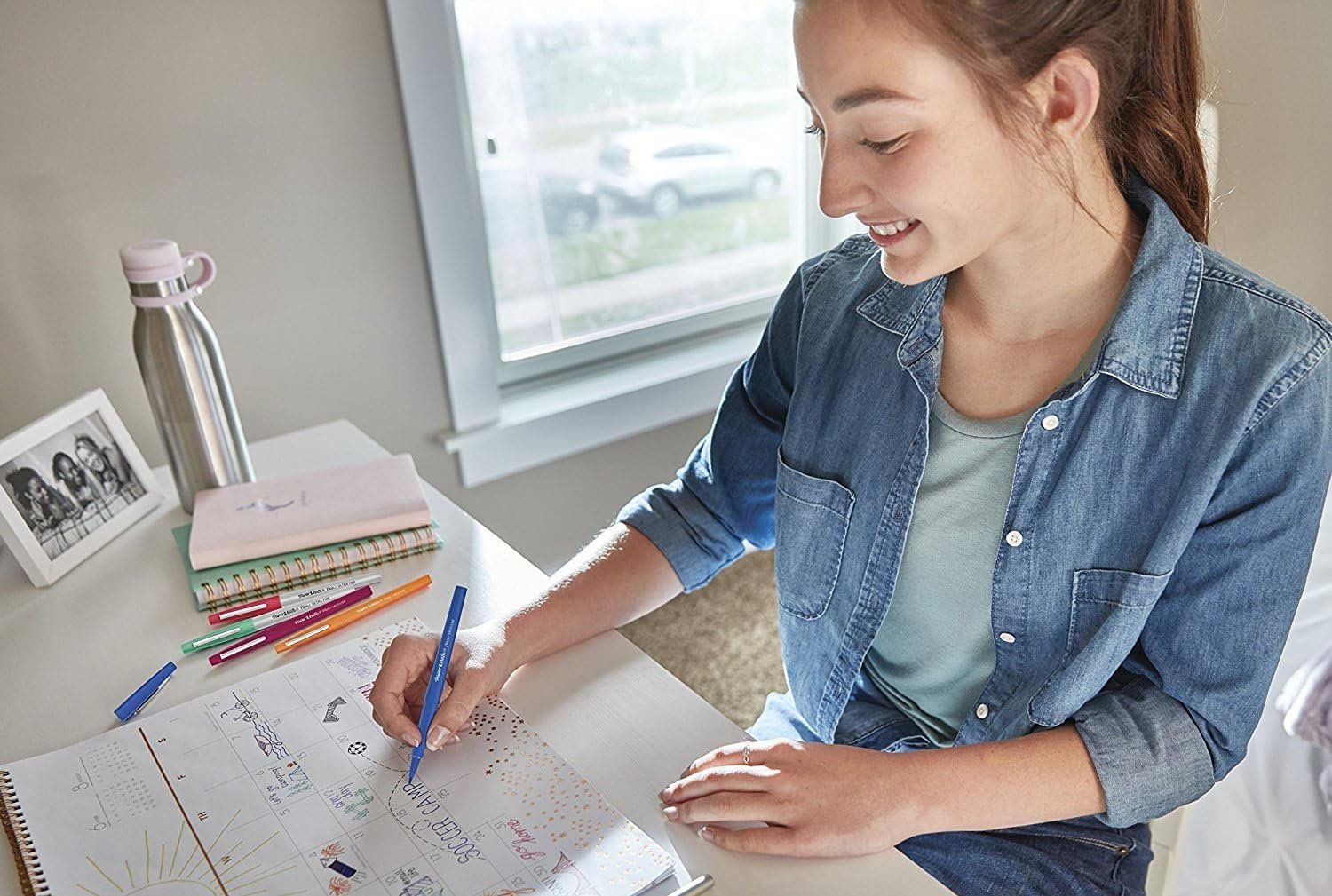 Fact: dull, smudgy ink is a downer. So boost your writing fun-factor with Paper Mate Flair Felt Tip Pens! With a rainbow of bright colors and smear-resistant ink that won’t bleed through the page, these colored pens make writing a blast. The medium point (0.7mm) writes in bold, colorful lines so your self-expression makes a major statement. The best part of all? Everything you can create—whether you’re taking notes, drawing, doodling, or doing anything else that inspires you. With Flair Pens, there’s no limit to your fun.