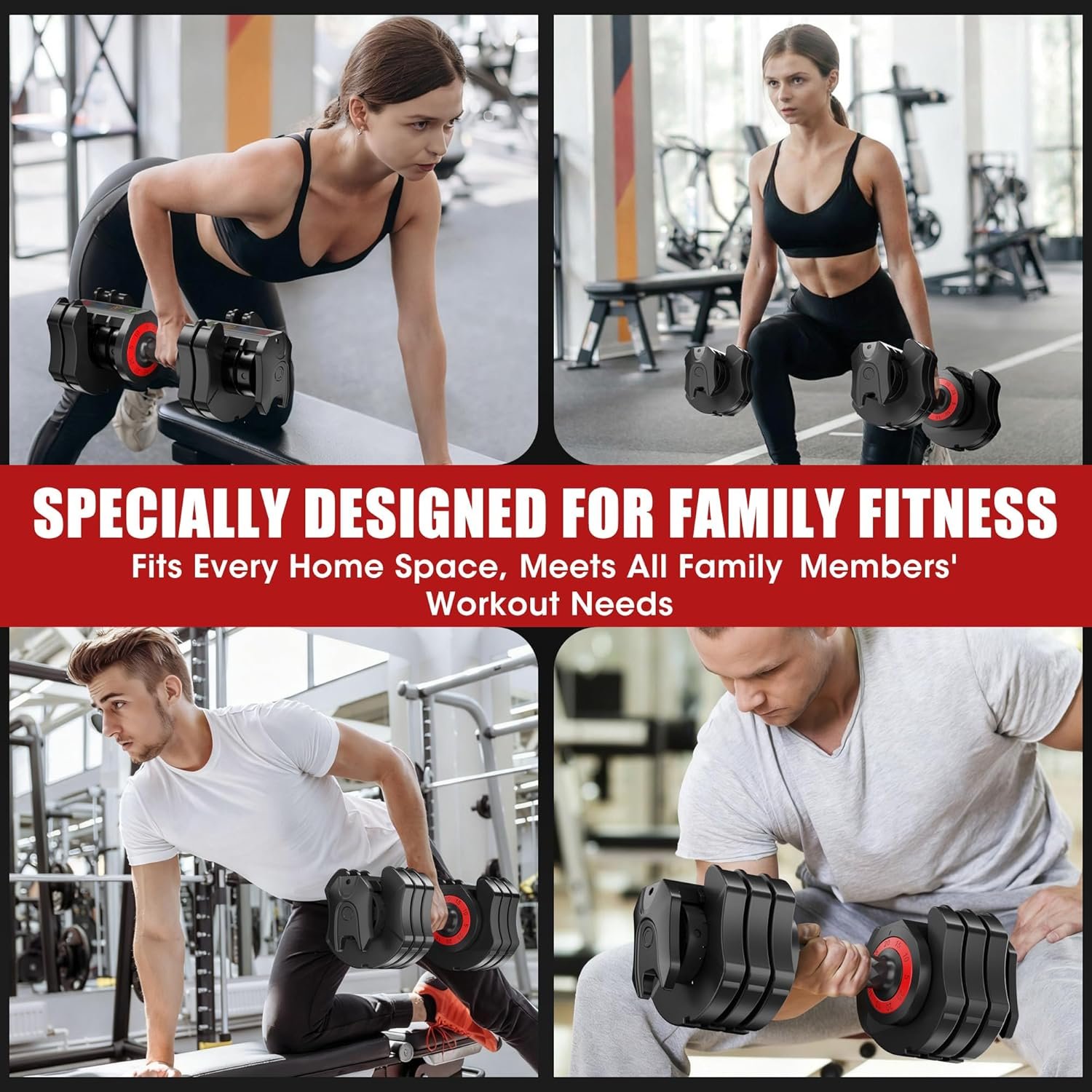 【Space-Saving Compact Design】Each dumbbell boasts a compact footprint, fitting effortlessly in small home gyms, living rooms, or even under beds. Replacing multiple traditional dumbbell sets, it saves 90% of storage space — ideal for those with limited room or seeking streamlined home fitness equipment.