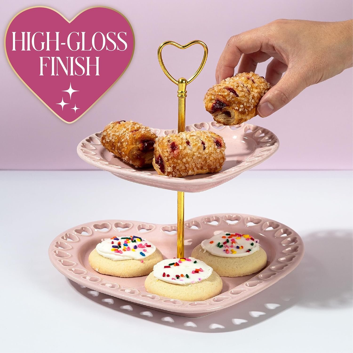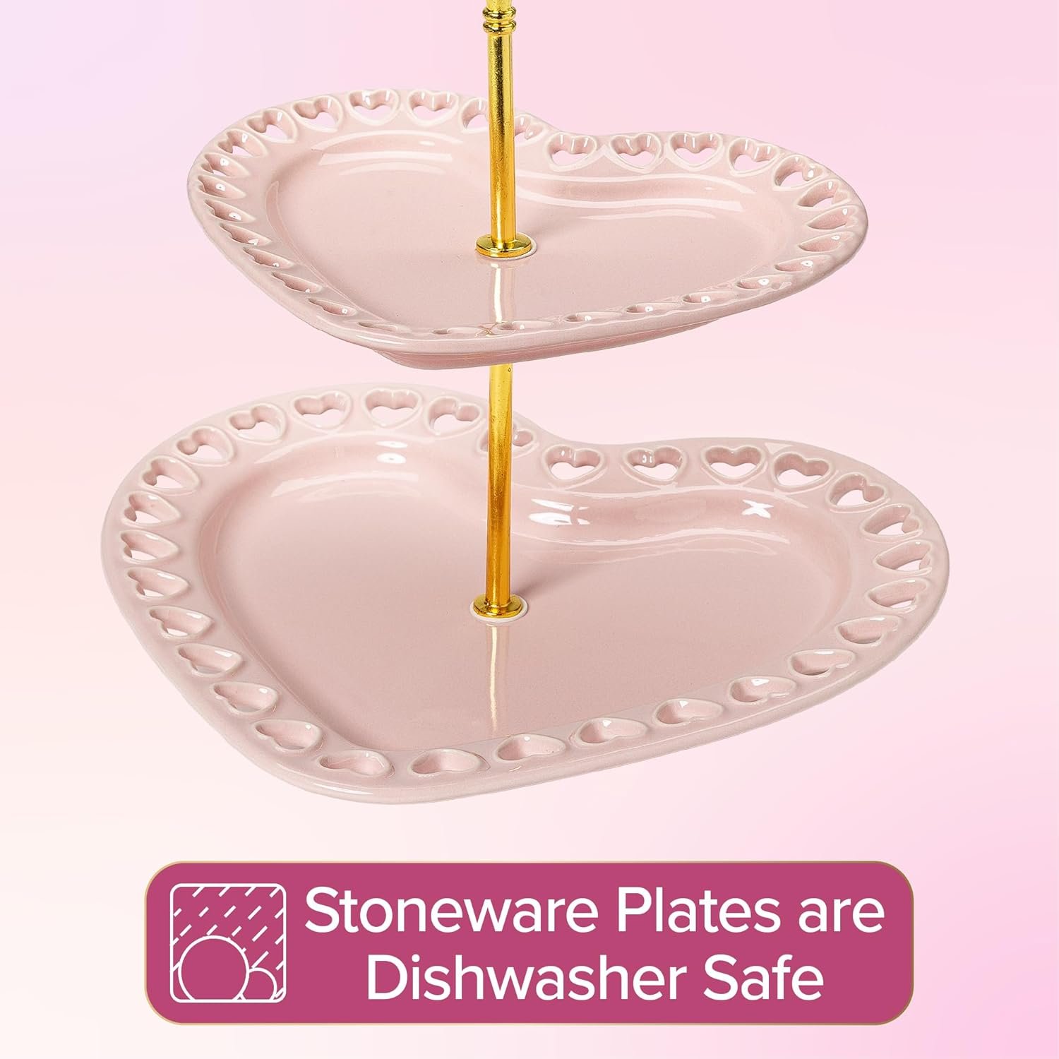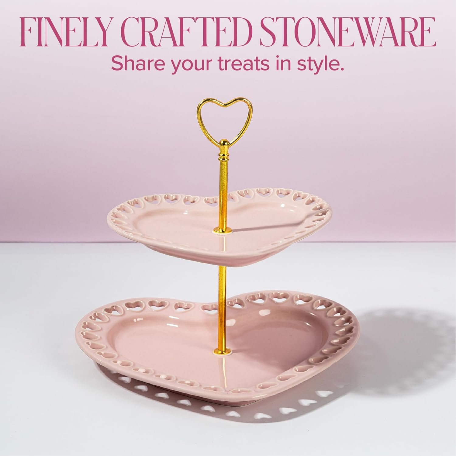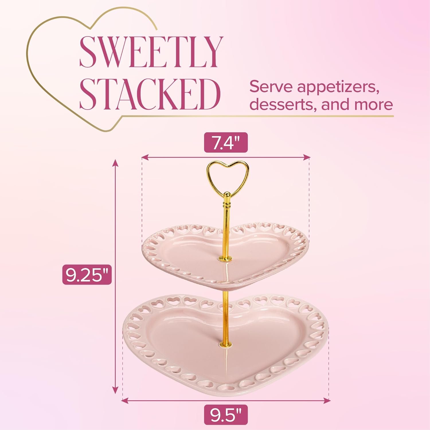 ICONIC HEART-SHAPED DESIGN: Display desserts, snacks, or small bites with this 2-tier heart tray. The stacked silhouette turns any kitchen, dining room, or event into a sliving tablescape.