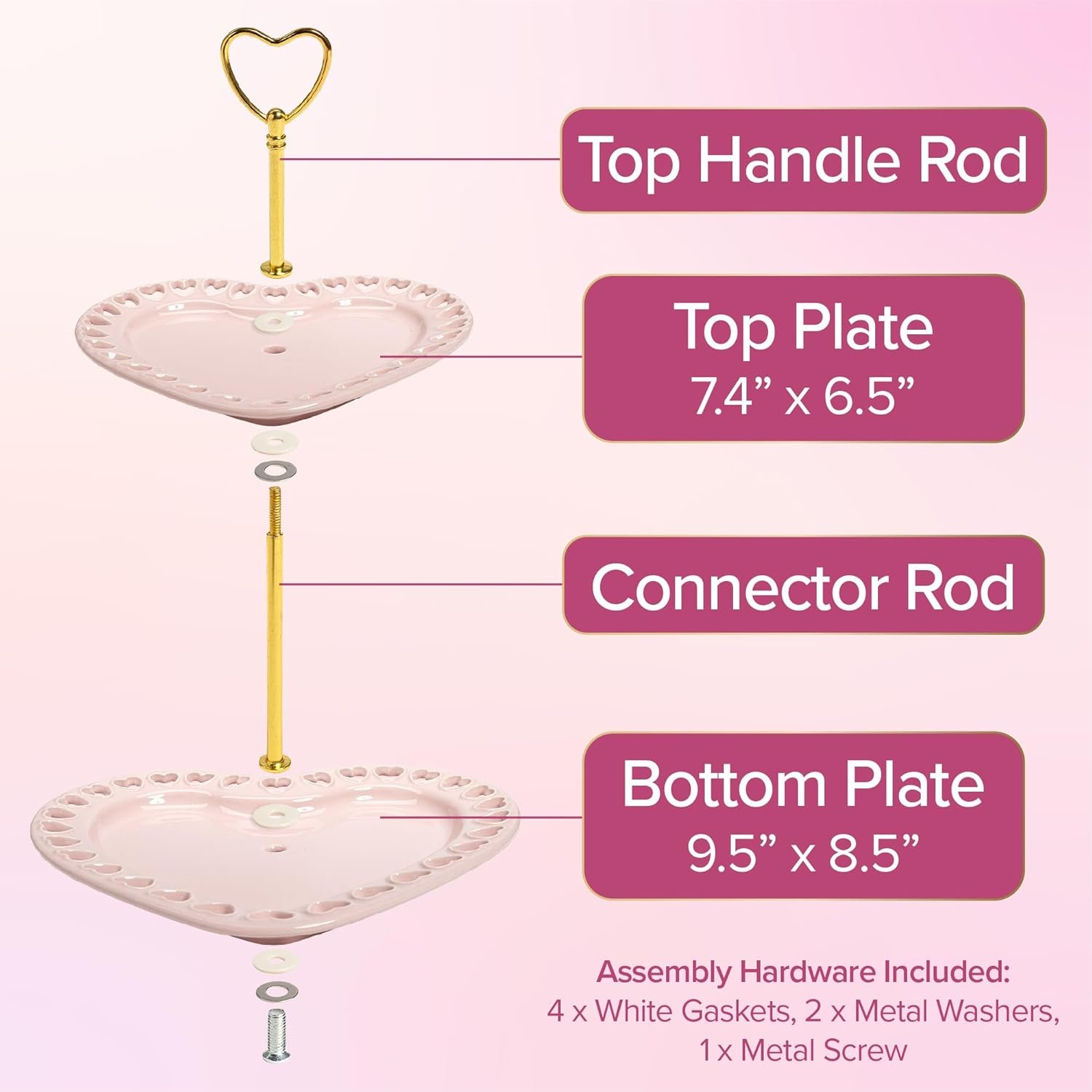 Be the first to review “Paris Hilton 2-Tier Heart Serving Tray, Iconic Ceramic Stoneware with Metal Handle, Easy Assembly for Stylish Display, 9-Inch and 7-Inch Plates, Pink”