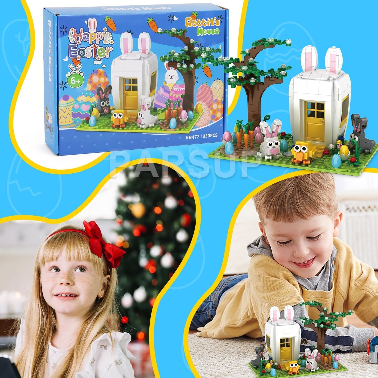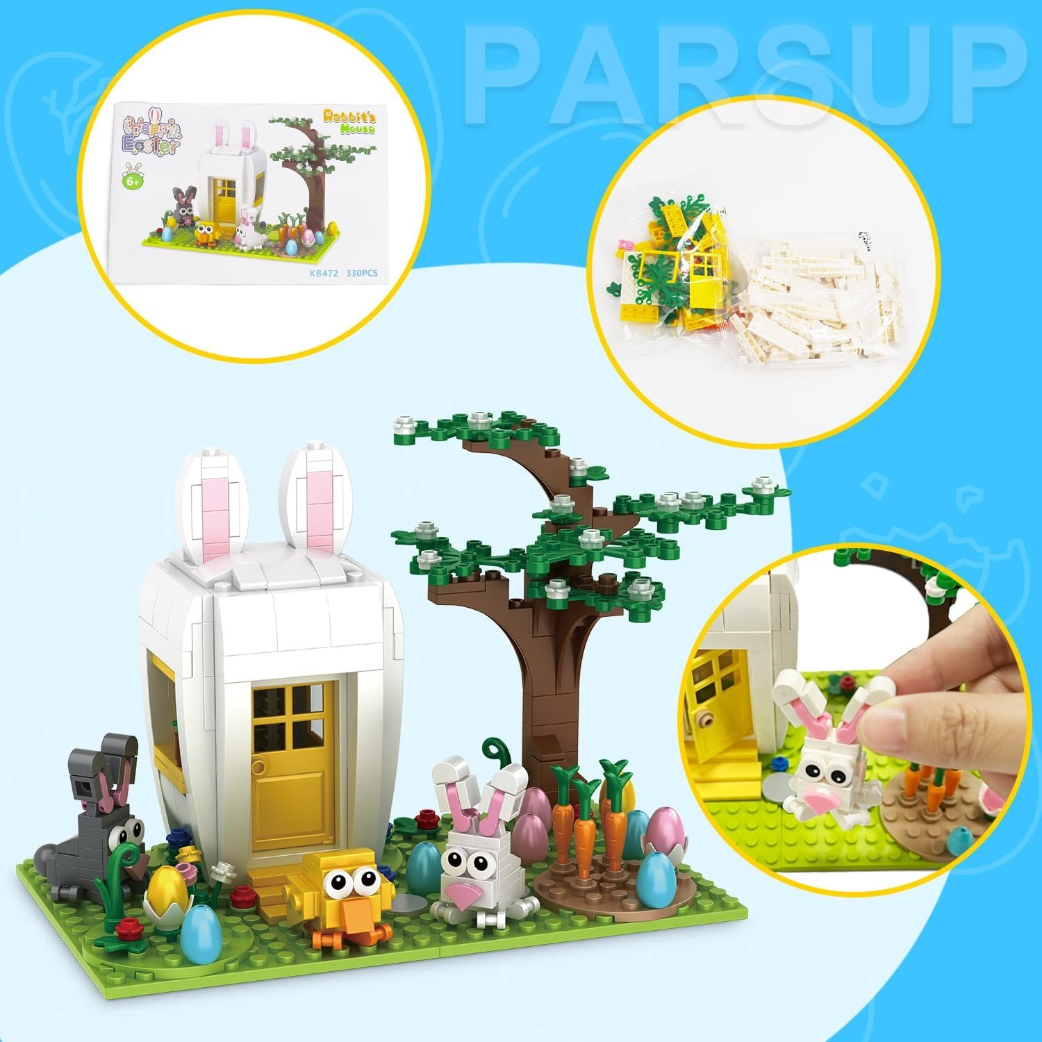 【Create a magical Easter scene with Building Blocks – Ideal for family gatherings!】Gather your family around the tree to build a magical Easter warm scene.