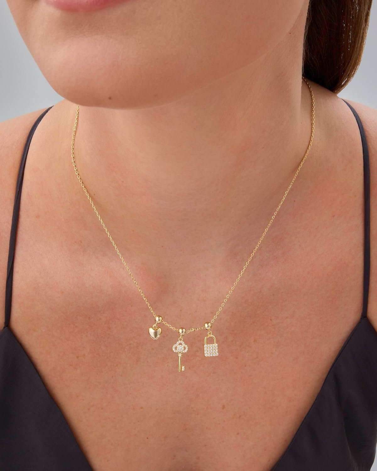 Elevate your everyday style with these irresistible gold necklace charms that are about to become your new accessory obsession! Our dainty and chunky charm necklaces for women blend trendy design with versatile wearability, perfect for beach days, summer adventures, or adding a touch of sparkle to your everyday look. Crafted with care, this dainty gold charm necklace features a hypoallergenic adjustable chain that ensures both comfort and style. The carefully curated cubic zirconia pendant brings a luxurious shine that catches the light and turns heads, making it the ultimate women’s charm necklace gold enthusiasts will adore. Whether you’re craving a coastal charm necklace vibe or looking for a charms necklace that speaks to your unique personality, this piece delivers. From shell charm necklace elements to heart and religious-inspired pendants, each charm tells a story. Mix and match these gold charms for necklaces to create a look that’s entirely your own. Express yourself without saying a word with this beachy charm necklace that’s equal parts dainty and cute. It’s not just a necklace – it’s a statement. Ideal for layering or wearing solo, this summer charm necklace will quickly become your go-to accessory for any occasion. Don’t settle for ordinary. Embrace the extraordinary with a necklace charms gold collection that’s as unique and dynamic as you are. Your perfect accessory adventure starts here!
