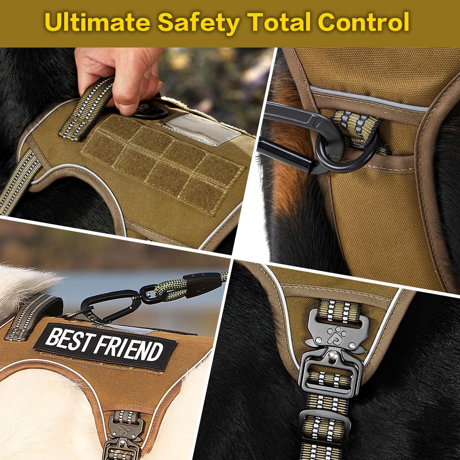 No Pull Dog Harness – Unlike other dog harnesses equipped with plastic buckles, this dog harness Medium sized is made with all-metal components, providing unbeatable durability. Thanks to its strength, our tactical dog harness ensures your furry friend stays secure, preventing escapes caused by broken buckles or D-rings