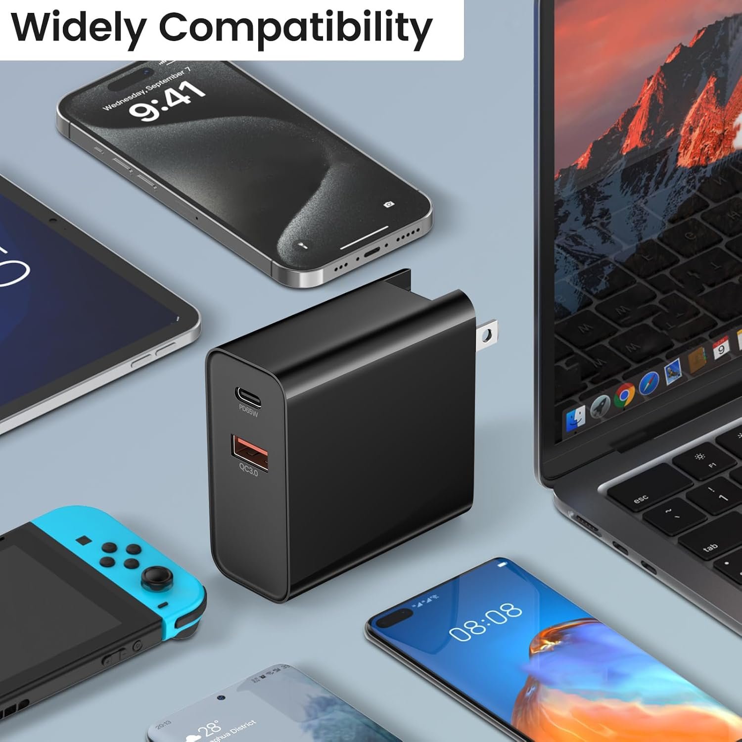 For high power demand devices, connects the USB C to C cable only, supports a fast charging; USB A port also supports fast charging; USB A and Type-C dual ports charging set supports 2 power demand devices(45w + 18w) charging simultaneously – saving time