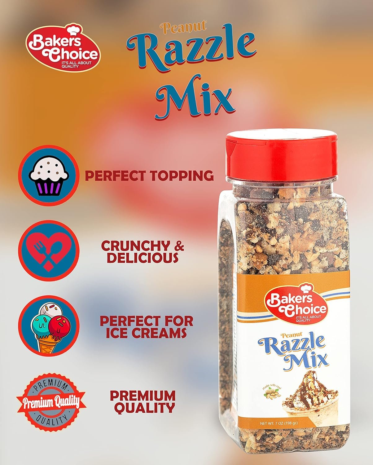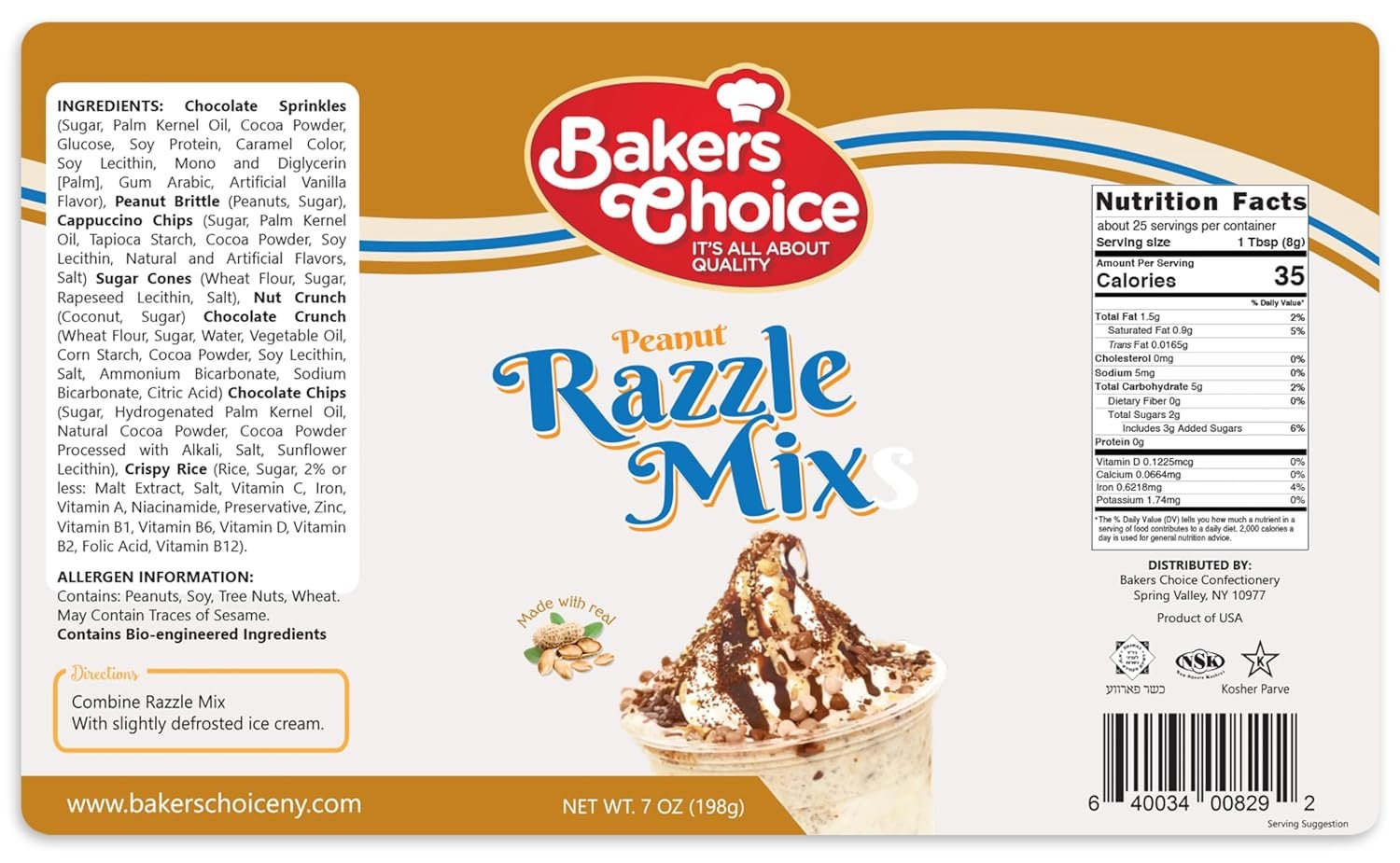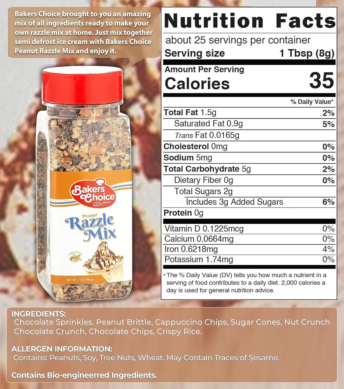 Peanut Razzle Crunch Topping – Chocolate, Caramel, Butterscotch and Peanut Mix – Sprinkles for Ice Cream Sundae Toppings – 7 oz. – Dairy Free, Kosher – Baker’s Choice