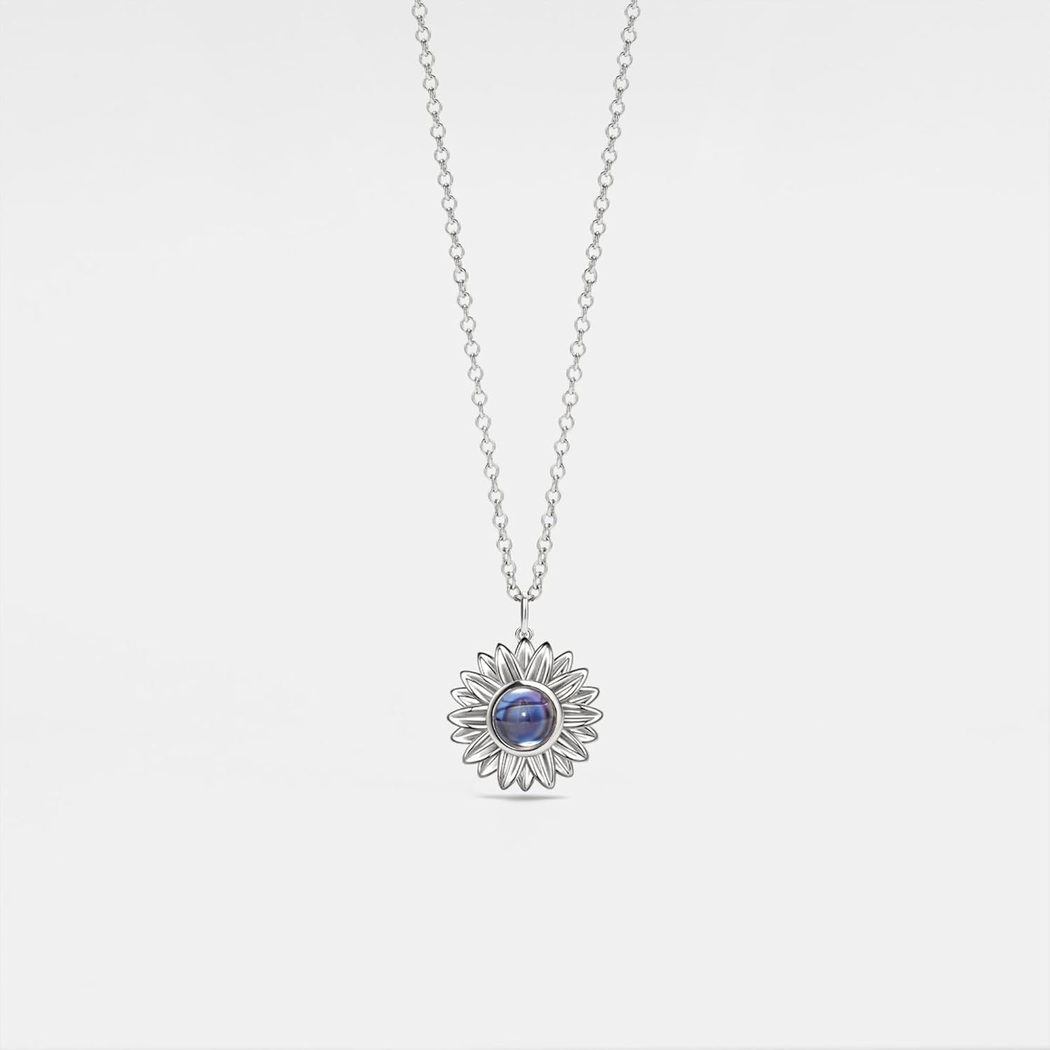 PERIMADE Custom Picture Projection Necklace with Photo Inside – Custom Text & Love in 100 Languages Sunflower Charm Pendant – Customized Birthday Memorial Gifts for Mother Wife Anniversary Valentines