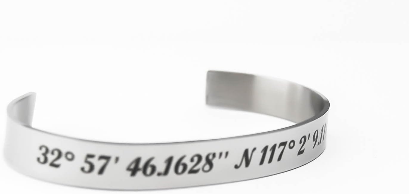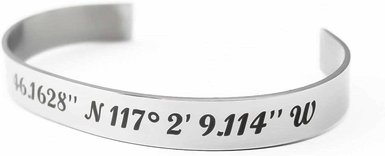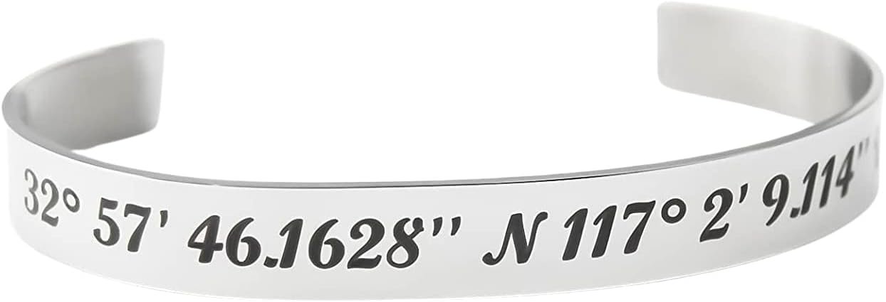 This is a custom made Latitude & Longitude cuff Bracelet.1/2in., 3/8in., or 1/4in x 6in.