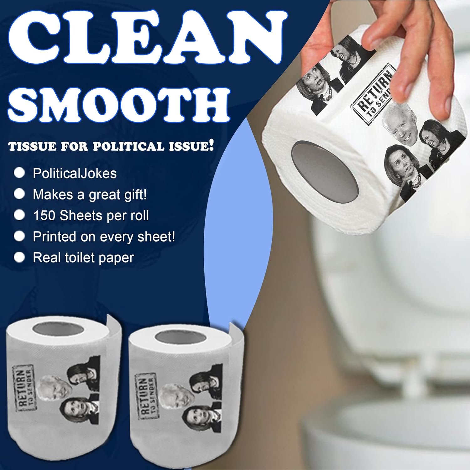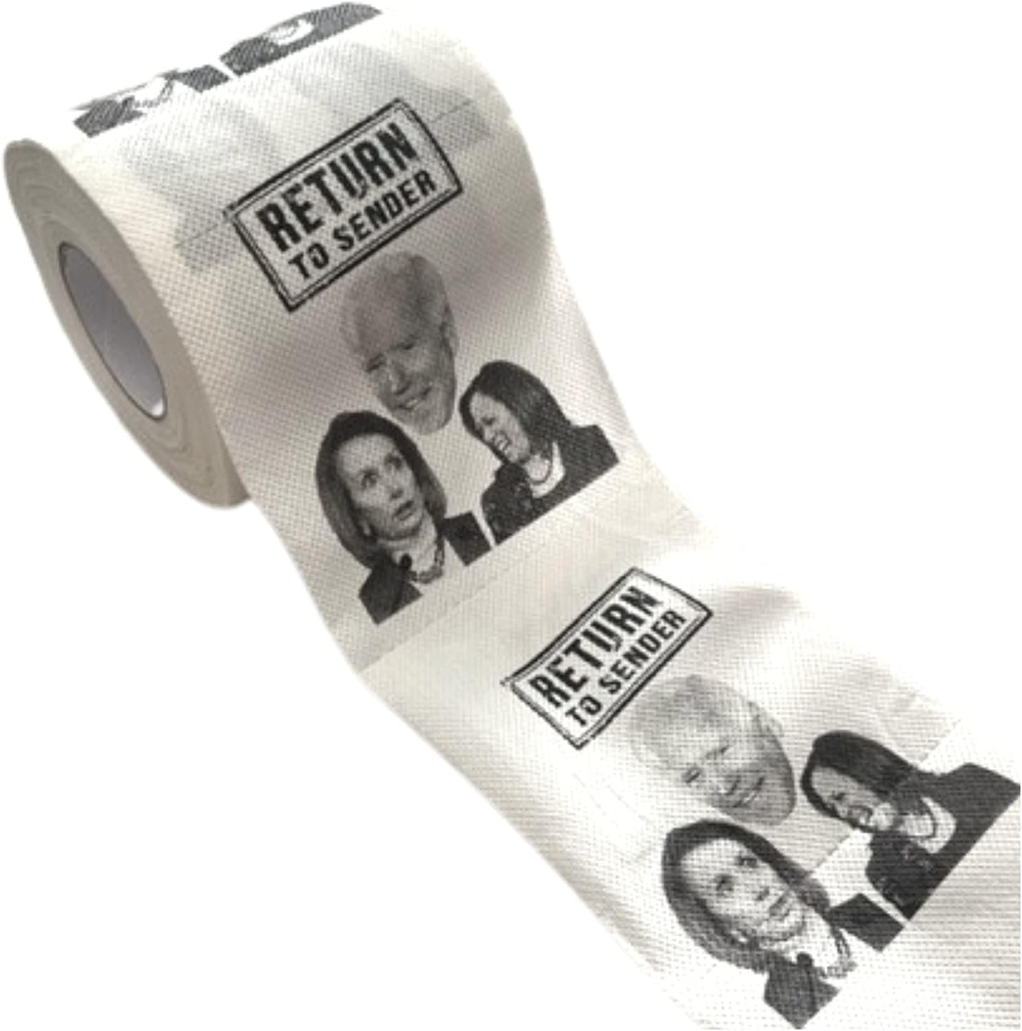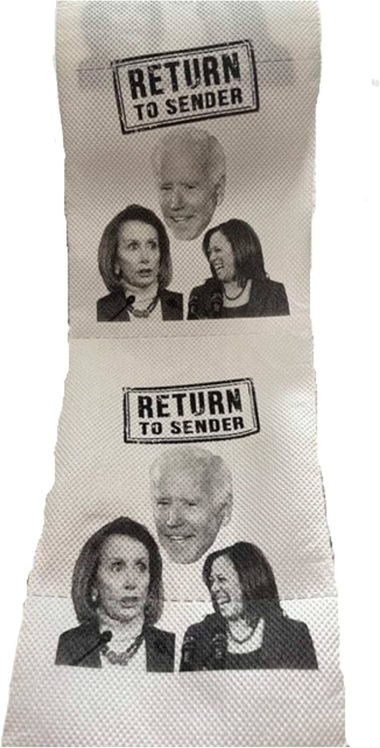 The JOE BIDEN, KAMALA HARRIS, AND NANCY PELOSI Toilet Paper Roll has 150 sheets per roll and the item measures 4.5 in (11 cm) Γ 4 in (10 cm) and comes with amazing print, everything is done in meticulous detail.