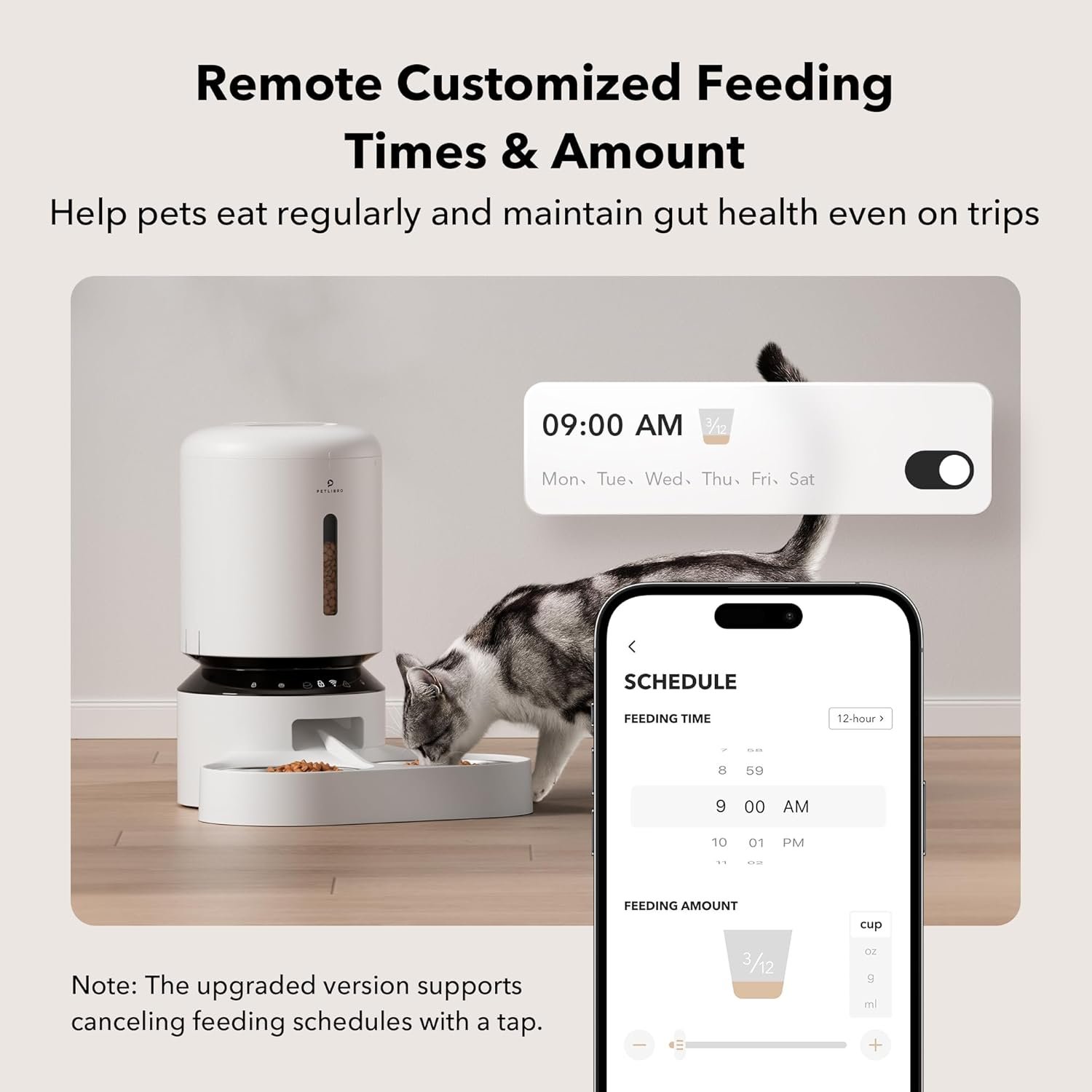 Product Description: The Petlibro WiFi Automatic Cat Feeder is the ultimate smart feeding solution for two-cat households. Perfect for busy pet owners or anyone who wants to make sure their pets are eating on time and in quantity. Whether you’re at work, on a short vacation, or just running errands, the Petlibro Automatic Cat Feeder WiFi gives you peace of mind that your pets are in good hands.