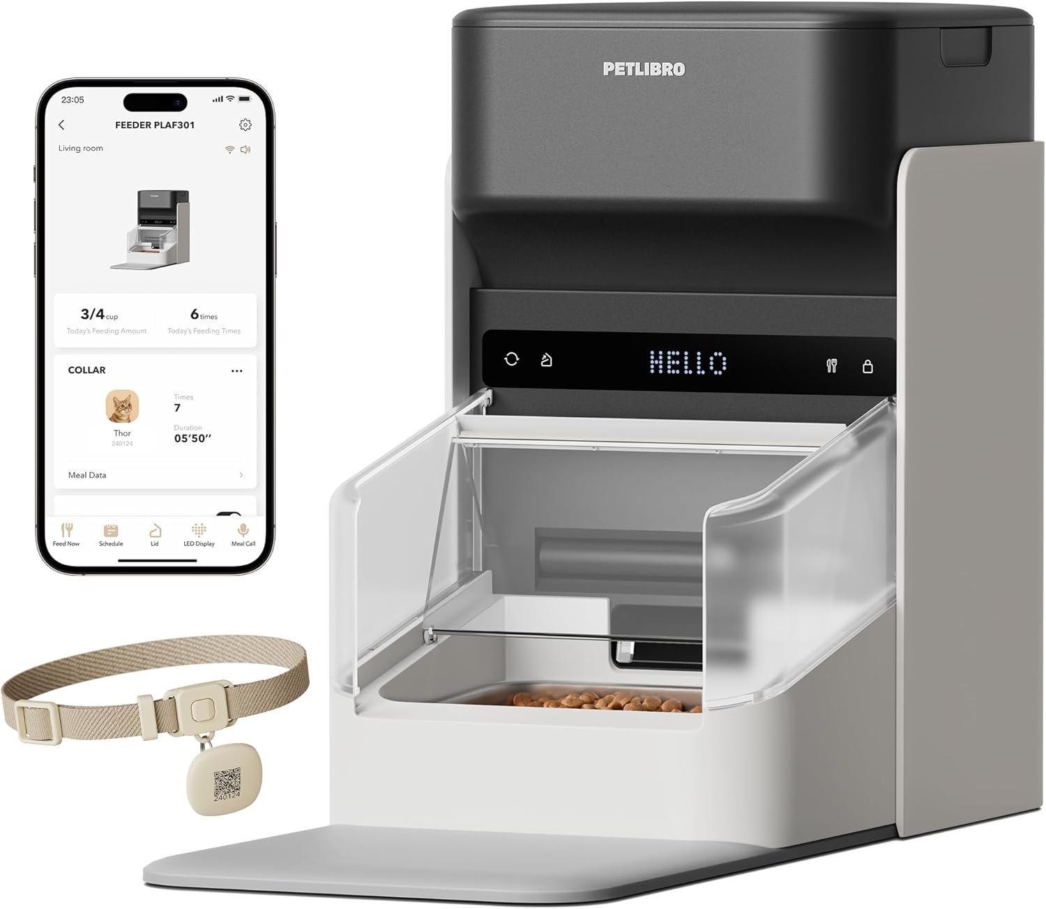 Cat Recognition for Personalized Meals: This Petlibro automatic cat feeder identifies your cat via a lightweight RFID collar tag sensor and unlocks the food bowl lid. Adjust the lid speed to suit your cat’s comfort level. (Only supports the included RFID collar tag.)