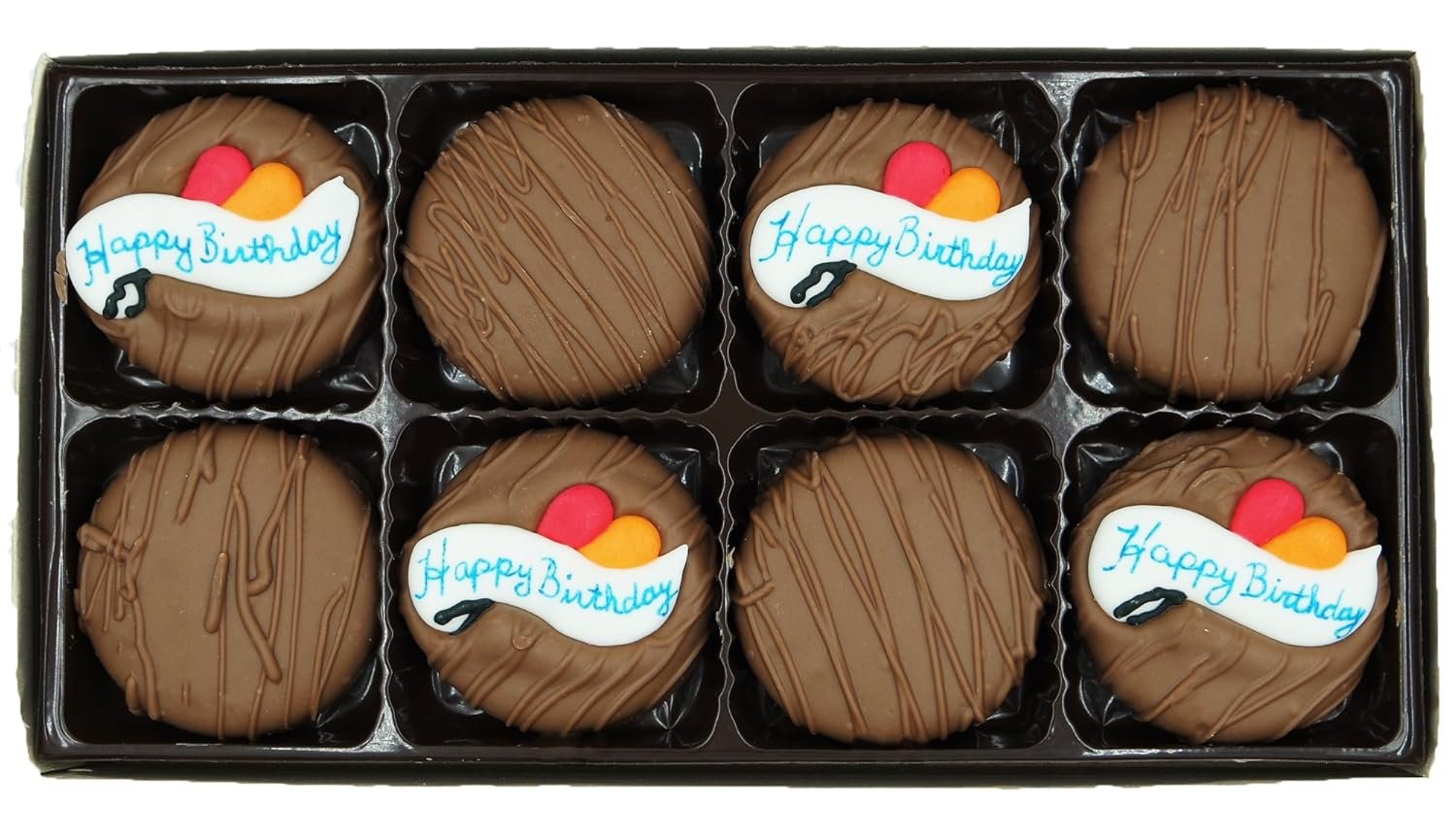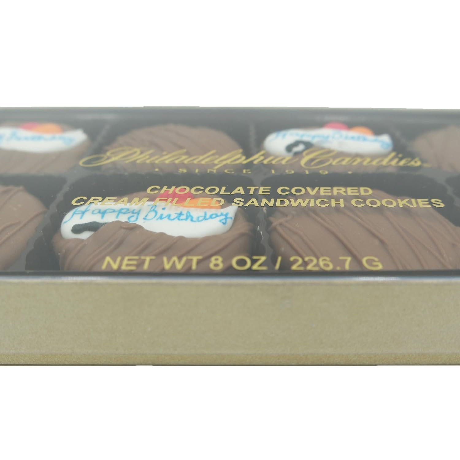 Quite possibly the most appetizing birthday gift! Hand-crafted “Happy Birthday” decorations are certain to bring a smile for the next birthday occasion. Each gift box contains 8 cookies: 4 decorated cookies with Happy Birthday and 4 undecorated cookies for the highest visual appeal. Royal icing (sugar) decorations are made in the USA. Made with OREO Cookies covered in Philadelphia Candies milk chocolate. OREO is a registered trademark of Mondelez International. Personalized message and gift wrap available during checkout. Philadelphia Candies offers 100% happiness on all chocolates. Philadelphia Candies has been manufacturing fine chocolates in Hermitage, Pennsylvania for over 100 years. The company was founded in 1919 and operates retail stores in Pennsylvania and Ohio.