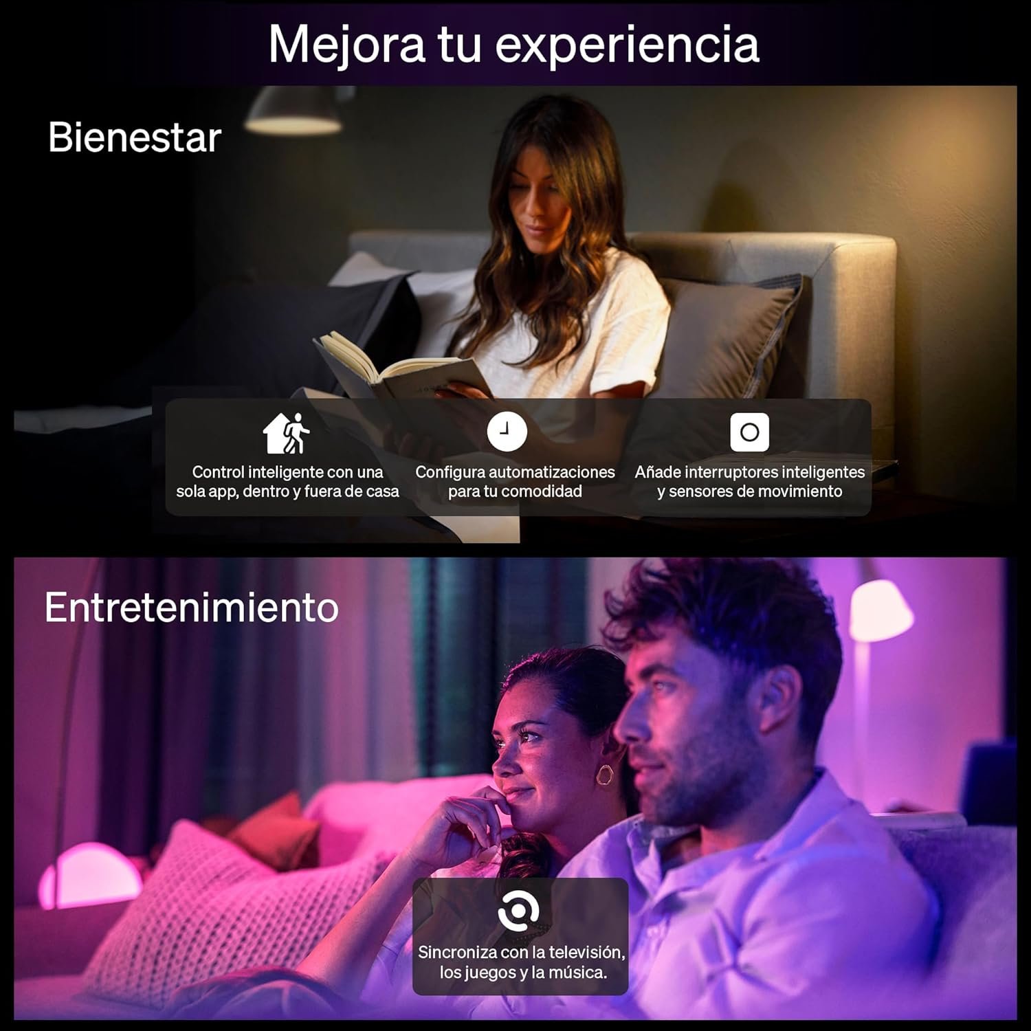 EXPAND YOUR SETUP: Add a Hue Bridge and other Hue products to unlock more features, including home security and content syncing with music, movies, and video games.