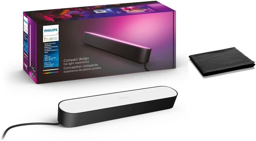 Elevate your home entertainment with the Philips Hue Play Light Bar. Enjoy 16 million colors, smart voice control, and seamless syncing to movies and music. Easily mount behind your TV or on walls. Hue Bridge required for full features. Create stunning ambiance for any occasion.